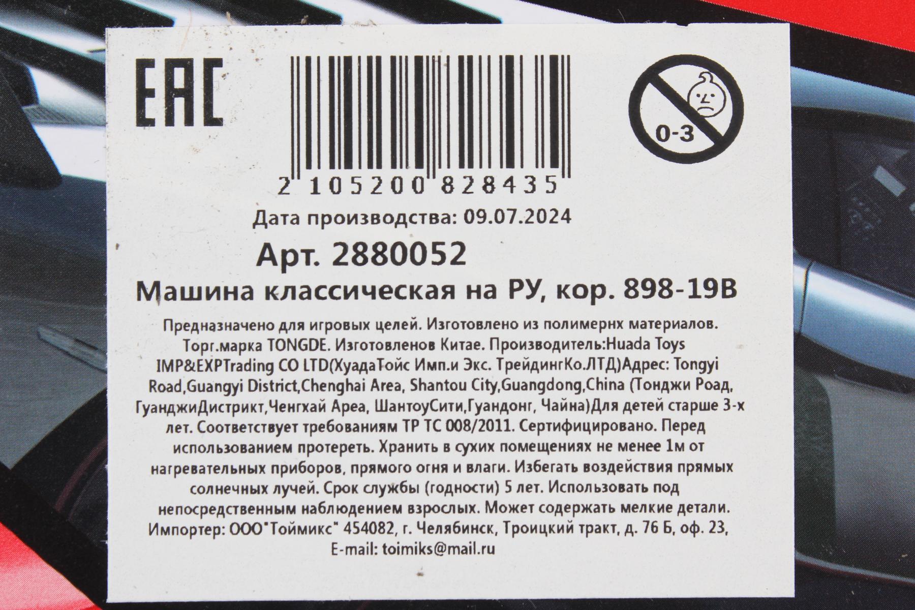 Размер упаковки составляет 43,0 см в ширину, 30,0 см в высоту и 8,5 см в глубину, что делает ее удобной для хранения. Игрушка подходит для детей старше 3 лет и станет отличным дополнением к любой коллекции игрушек. Не упустите возможность подарить своему ребенку радость и веселье с этой замечательной игрушечной машиной!