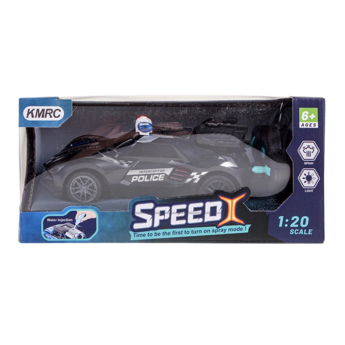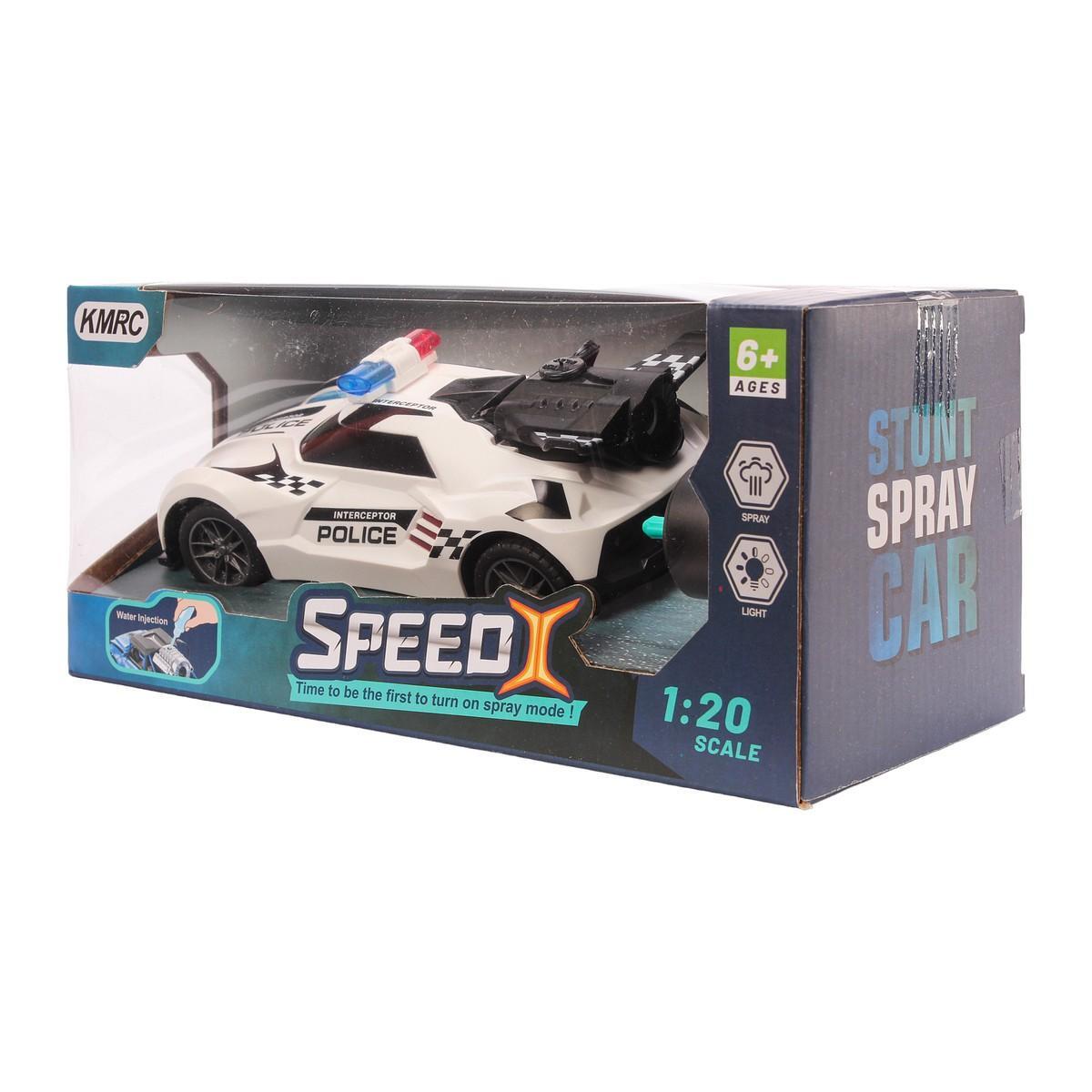 Машинка полицейская на РУ "SPEED X", с подсветкой и распылителем, пластик, белая/синяя, 19х6х8см