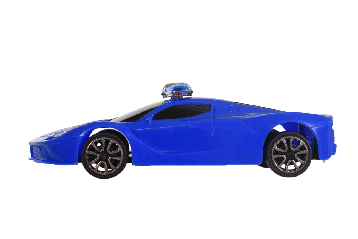 Размеры игрушки составляют 27 см в длину, что делает ее удобной для маленьких ручек. Машина имеет гладкую поверхность и обтекаемые линии, что придает ей спортивный вид. Черные колеса с элементами дизайна имитируют литые диски, а красные и синие световые маячки на крыше делают ее еще более эффектной.