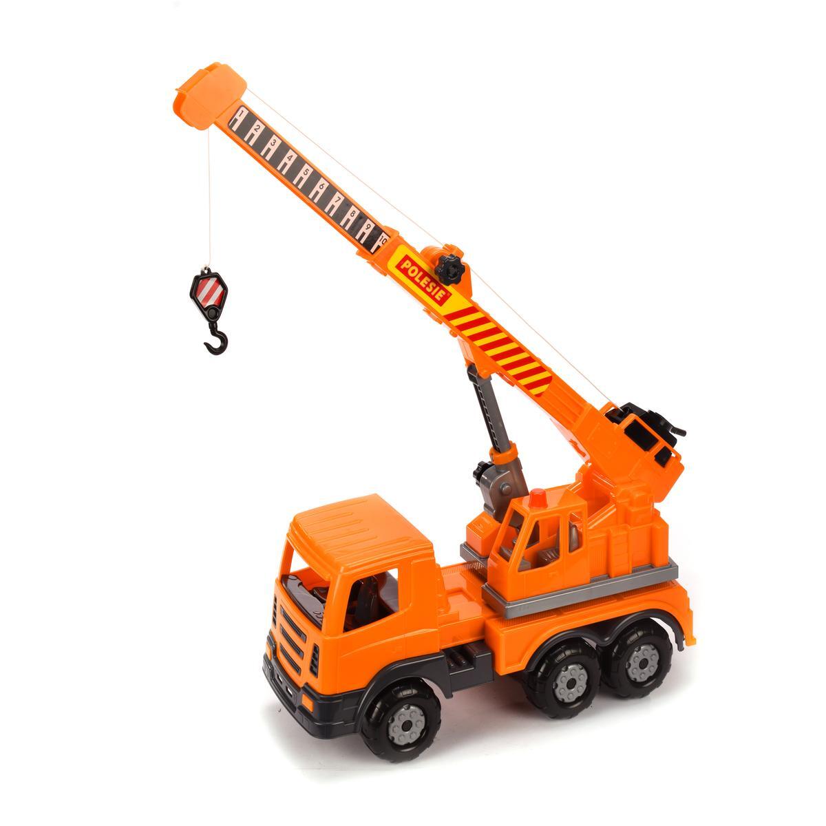 Кран имеет подвижную стрелу, которая заканчивается крюком, что позволяет поднимать и опускать предметы. Игрушка выполнена из прочного пластика, что гарантирует ее долговечность. Размеры и точные пропорции не указаны, но игрушка выглядит как стандартный грузовик с краном, что делает ее удобной для игры. С таким краном ваш ребенок сможет проводить часы увлекательной игры, развивая свои навыки и фантазию.