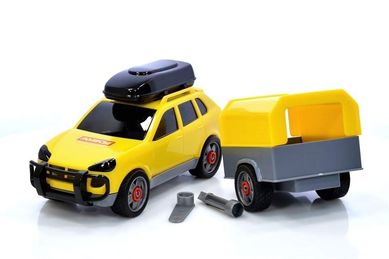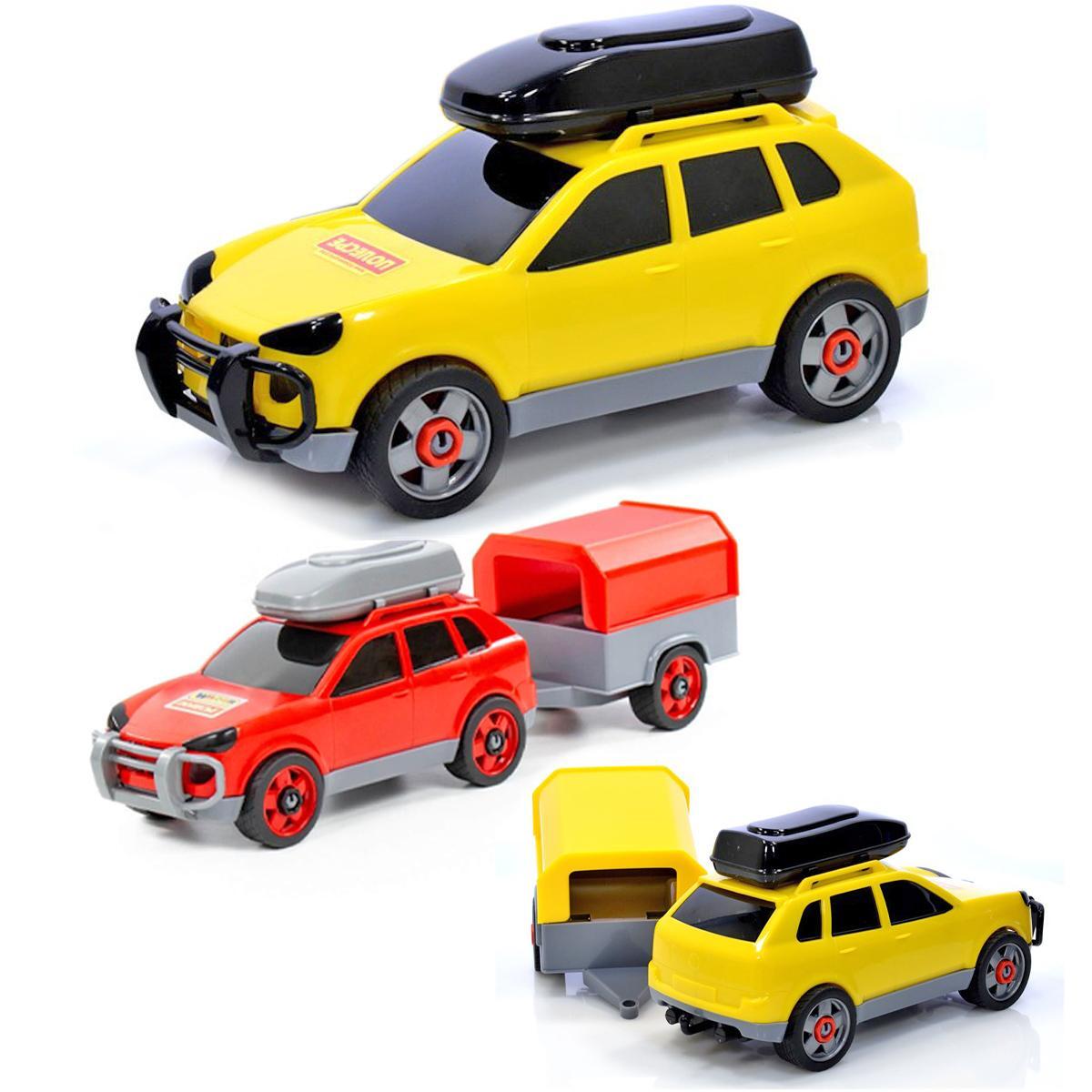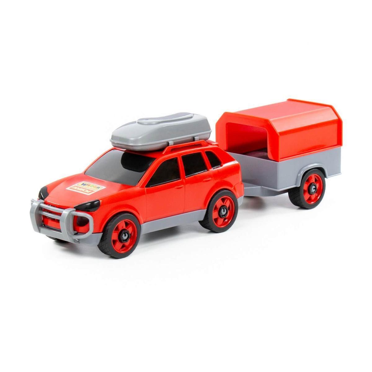 Машинка с прицепом «Полесье» пластиковая, развивающая игрушка, желтый/красный/серый, багажник на крыше