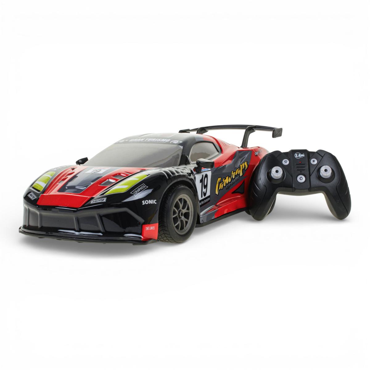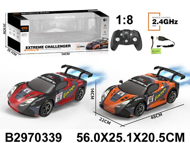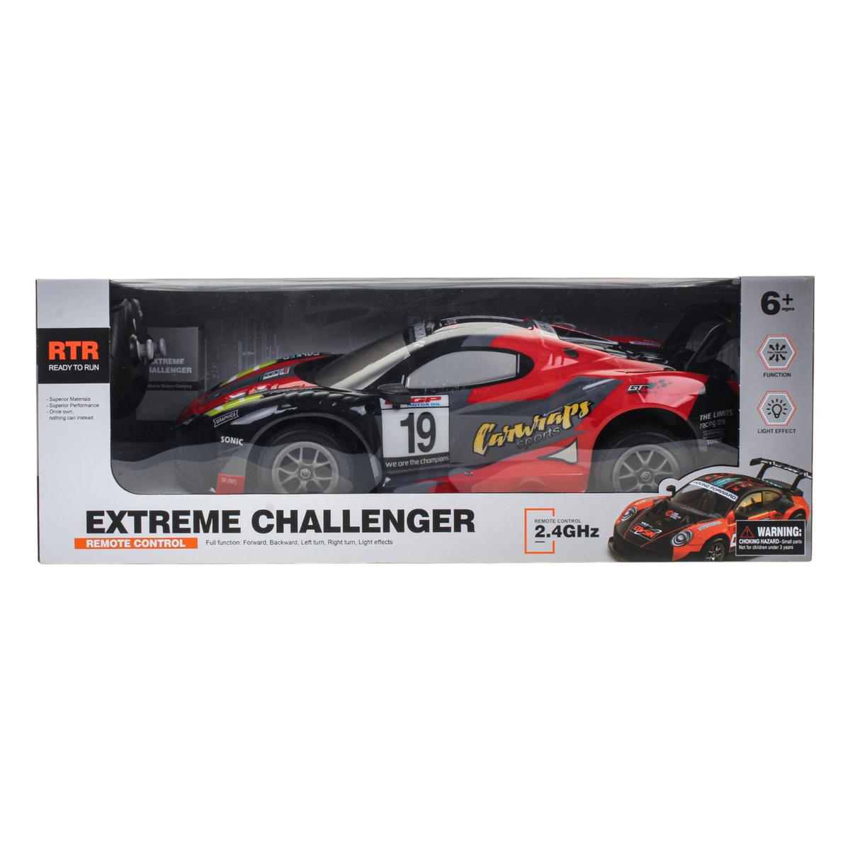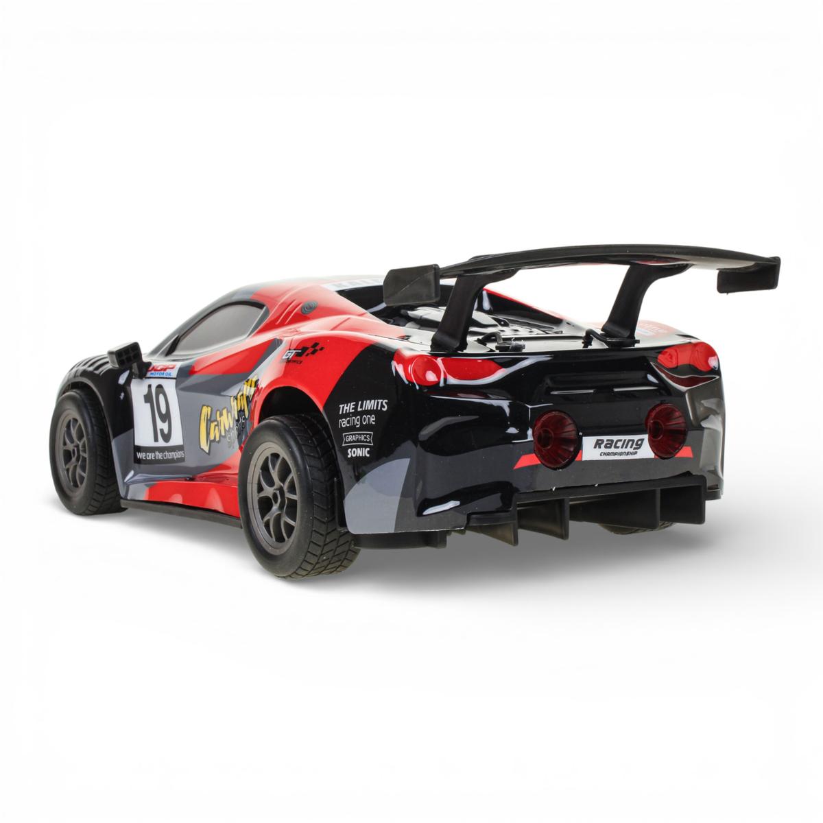 Машина на радиоуправлении масштаба 1:8 создана для ярких гонок дома и на улице. Крупный размер 48х22х14 см, спортивный дизайн со спойлером и световые эффекты делают игру максимально захватывающей. Ребенок чувствует себя настоящим пилотом, управляя мощной моделью с удобного пульта 2.4GHz.