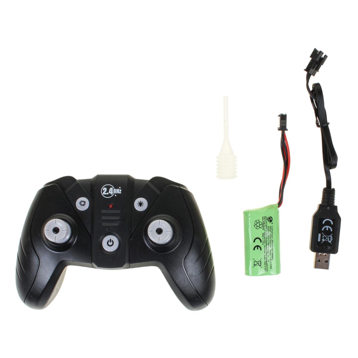 В комплекте предусмотрены аккумулятор и USB-кабель для зарядки, что избавляет от постоянной покупки батареек и позволяет быстро подготовить автомобиль к новым соревнованиям. Пульт геймпадного типа удобно лежит в руках и обеспечивает точное управление.