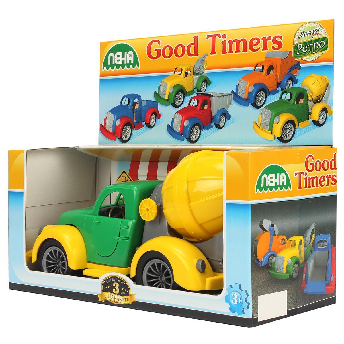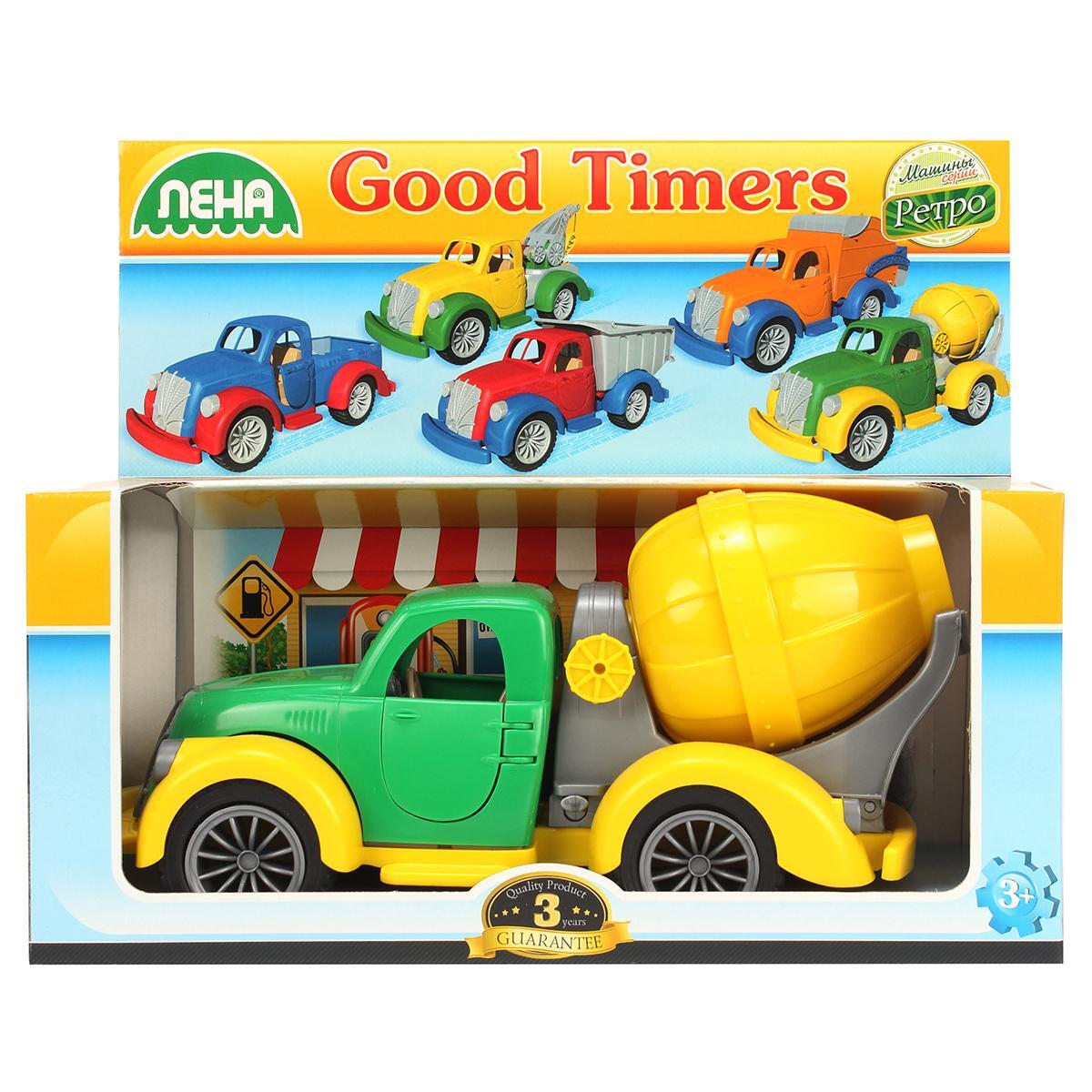 Машина "Ретро" с бетономешалкой, 32см, пластик, зеленый/желтый
