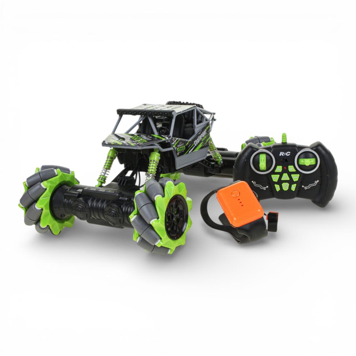 Подарите ребенку незабываемые эмоции с уникальной машиной-перевертышем. Этот внедорожник оснащен инновационной системой управления жестами с помощью сенсорного браслета. Достаточно надеть его на руку и двигать кистью вправо-влево или вверх-вниз, чтобы полностью контролировать движение.