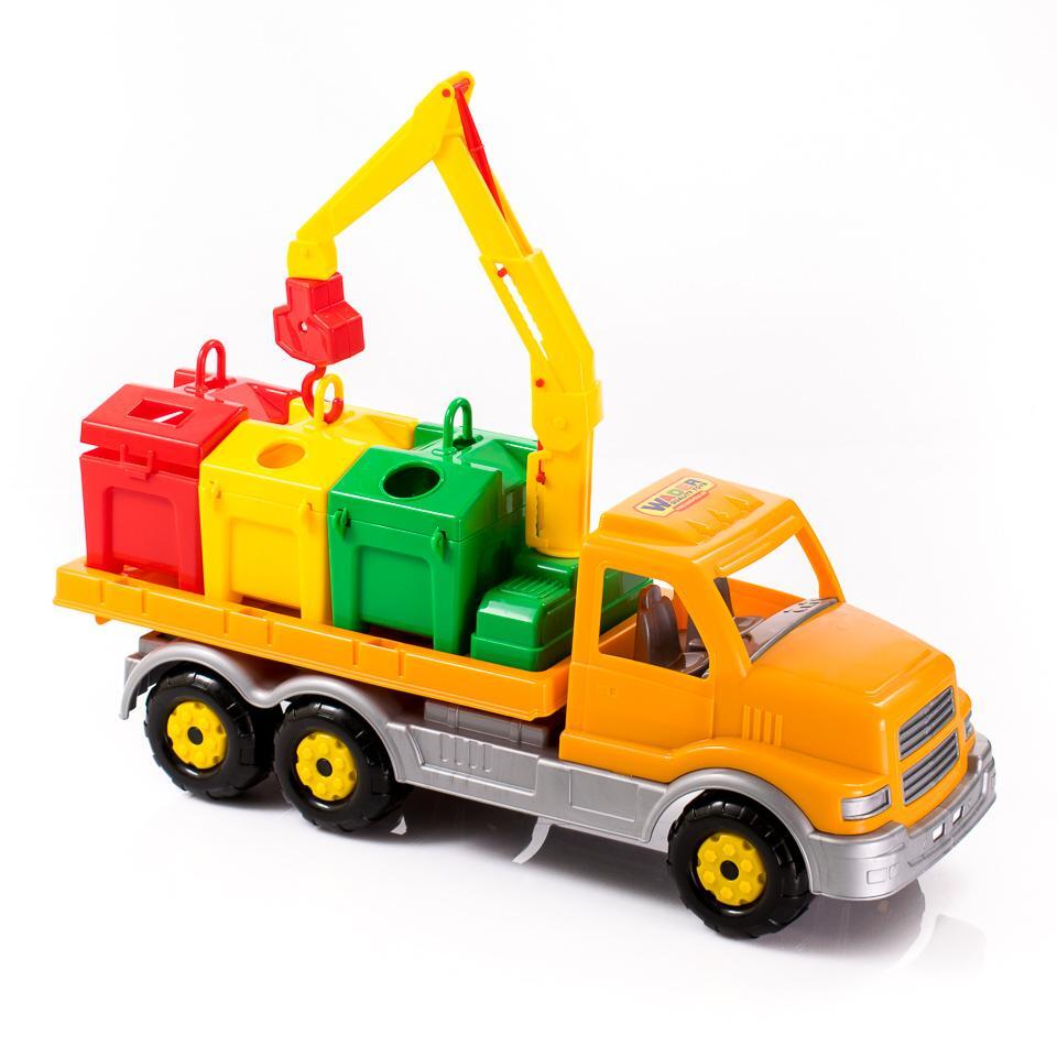 Игрушка "Сталкер": грузовик-контейнеровоз с подъёмным краном, 3 контейнера, оранжевый (Полесье)