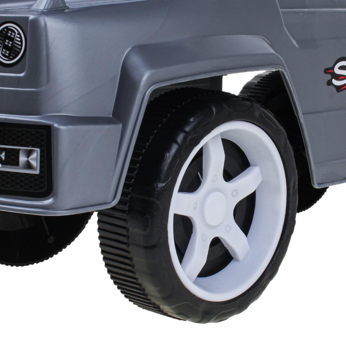 - Проходимость: Большие колеса обеспечивают плавный ход и хорошую проходимость по различным поверхностям, будь то ровный пол или асфальт в парке.