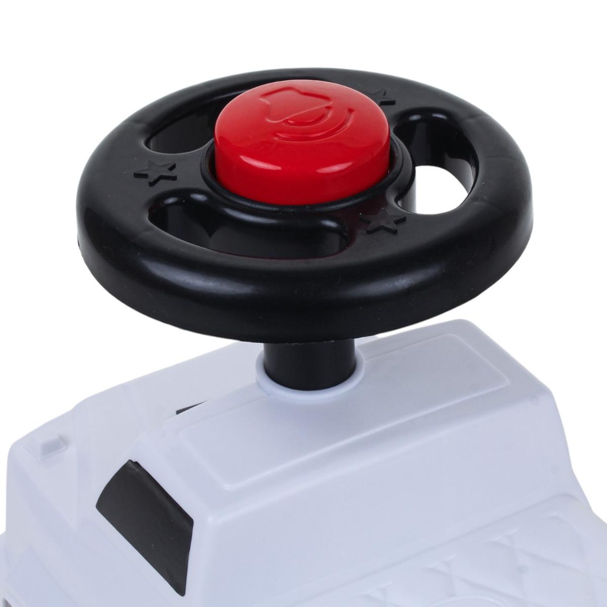 - Музыкальный руль: Поворотный руль с музыкальными элементами не даст малышу заскучать в пути, развивая моторику и слуховое восприятие.