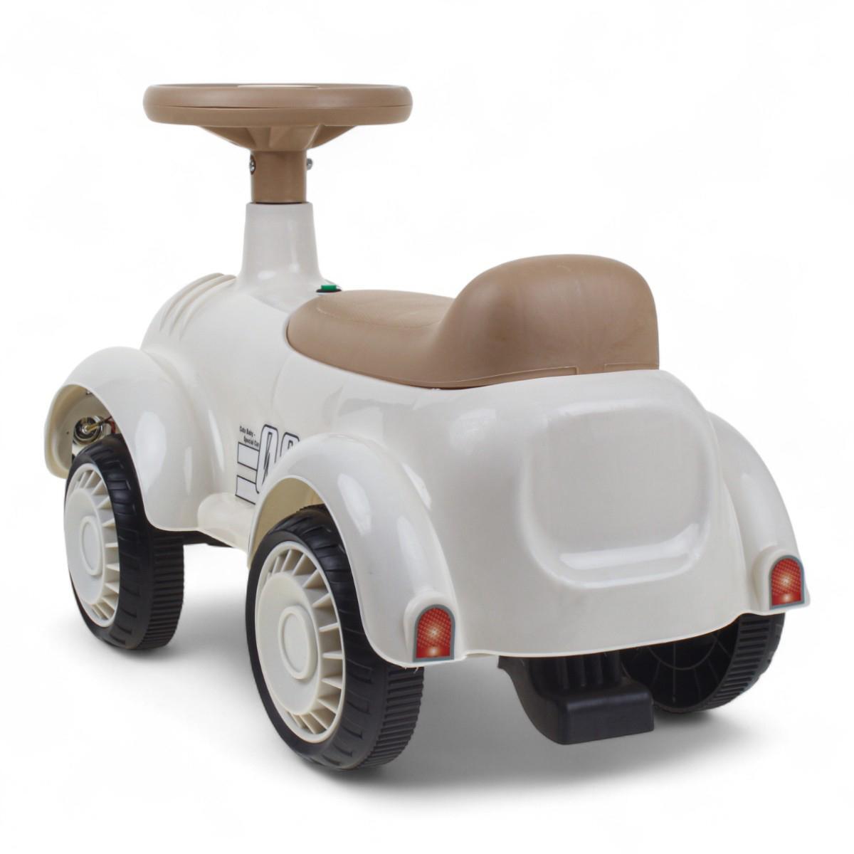 Размеры: 58х28х38 см, материал: пластик, цвет: белый с бежевыми элементами. Идеально подходит для активных малышей, способных держать равновесие и обучающихся первых движений. Помогает развивать координацию, моторные навыки и вызывает радость в каждой прогулке.