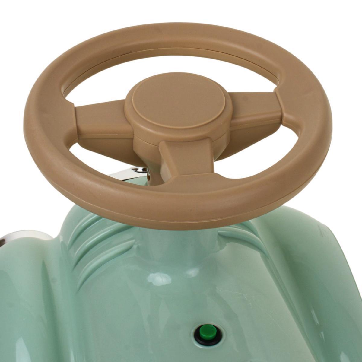 Особенности: крупные задние и передние колеса, имитирующие автомобильные, бежевый руль для удобства и реалистичного управления, яркая окраска для привлечения внимания и побуждения к активной игре.