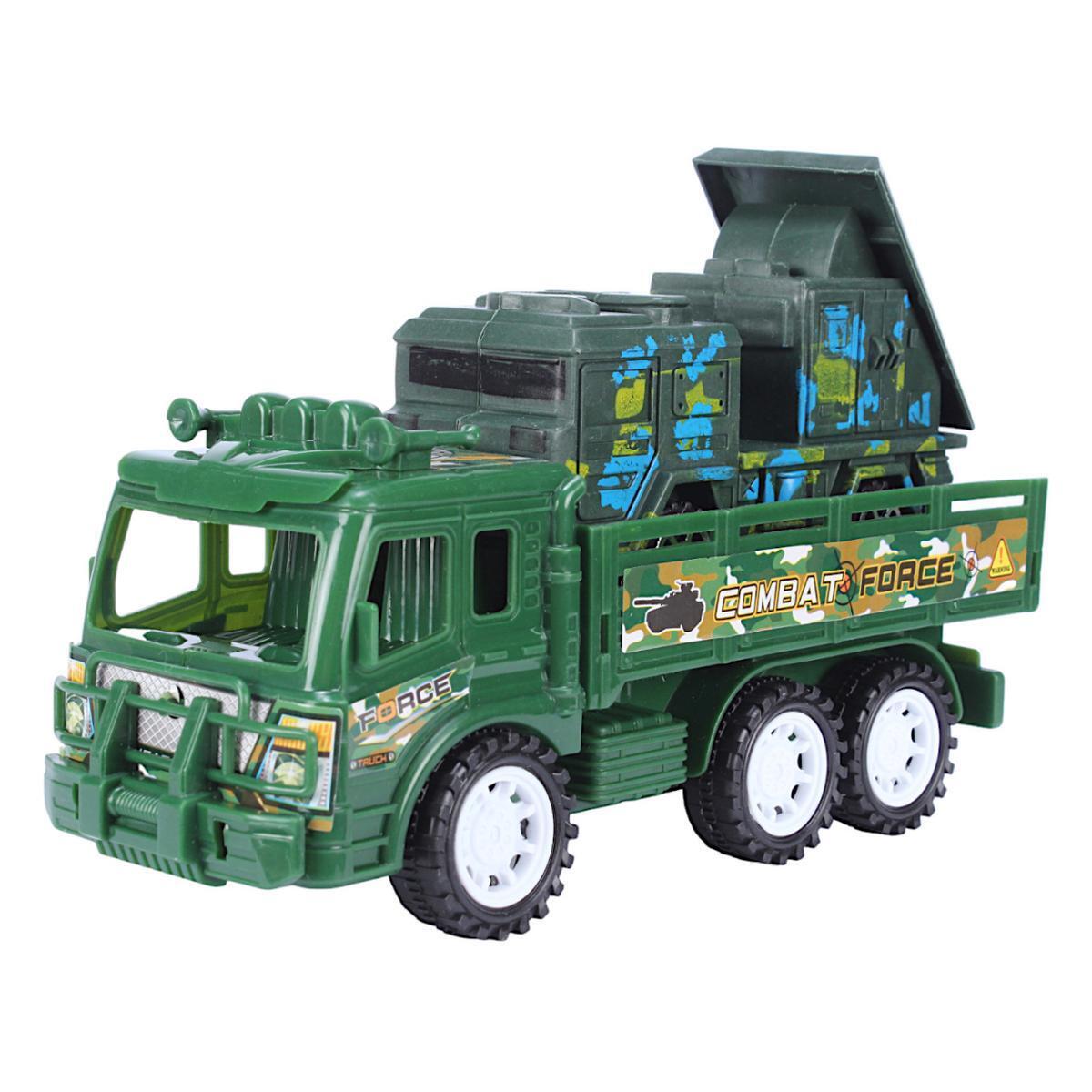 Почему стоит выбрать именно этот грузовик? Во-первых, он выполнен из качественного пластика, что обеспечивает долговечность и безопасность в использовании. Во-вторых, его военный дизайн с элементами камуфляжа и надписью "COMBAT FORCE" привлечет внимание любого маленького любителя техники. Кроме того, игрушка способствует развитию фантазии и творческого мышления, позволяя создавать различные игровые сценарии.