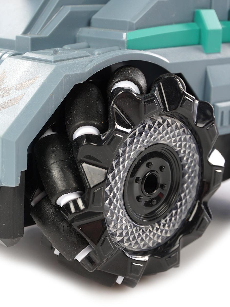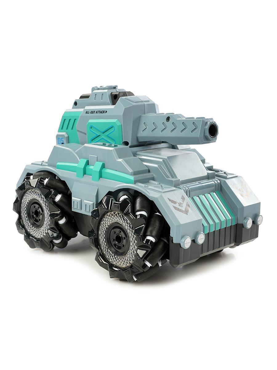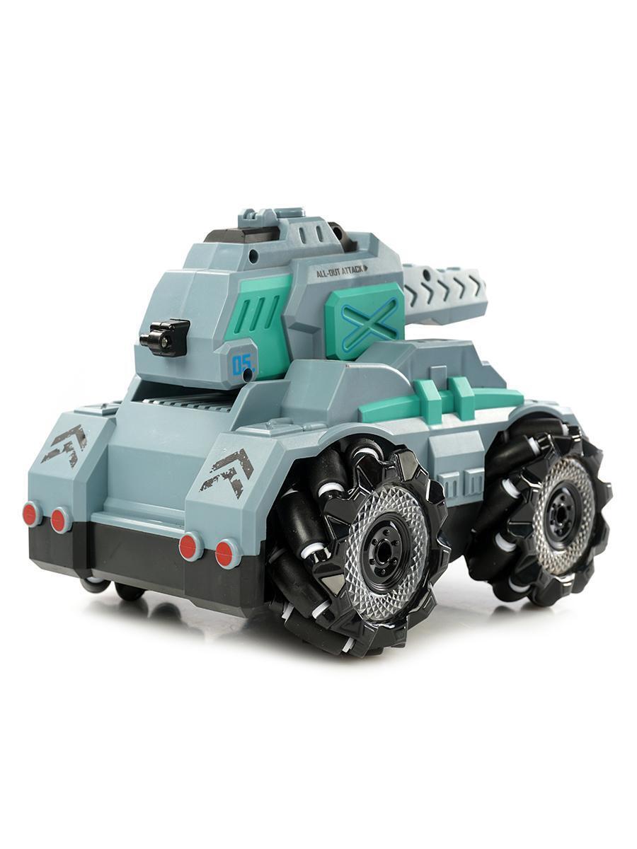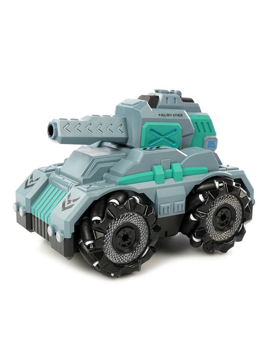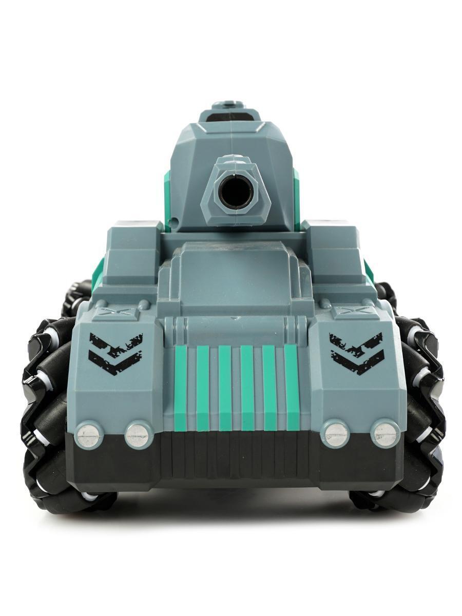 Танк выполнен в стильном серо-зеленом цвете с детализированными элементами дизайна, что делает его не только функциональной, но и привлекательной игрушкой.