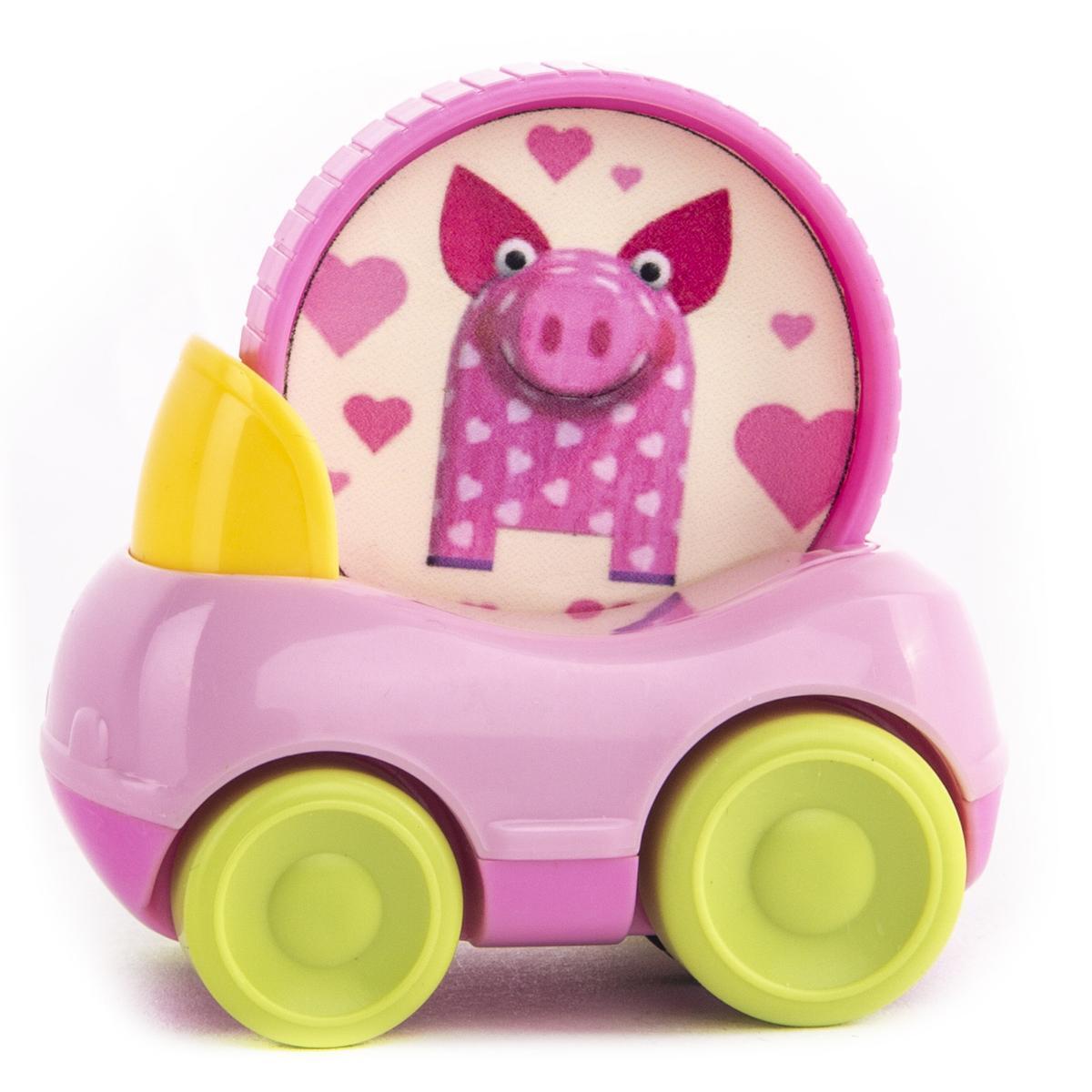 Ярко-розовый корпус с контрастными жёлтыми колёсами создаёт визуальные акценты, привлекая внимание малыша. Специальная круглая вставка с изображением поросёнка развивает ассоциативное мышление — ребёнок учится сопоставлять образы и запоминать персонажей. Идеальный первый транспорт для сюжетно-ролевых игр, который способствует: