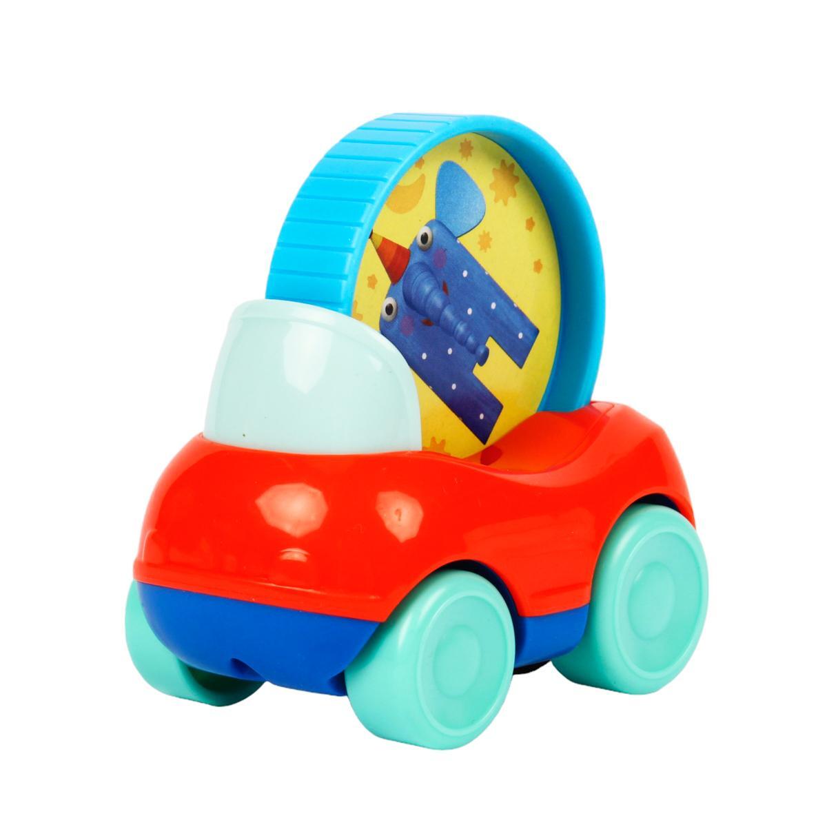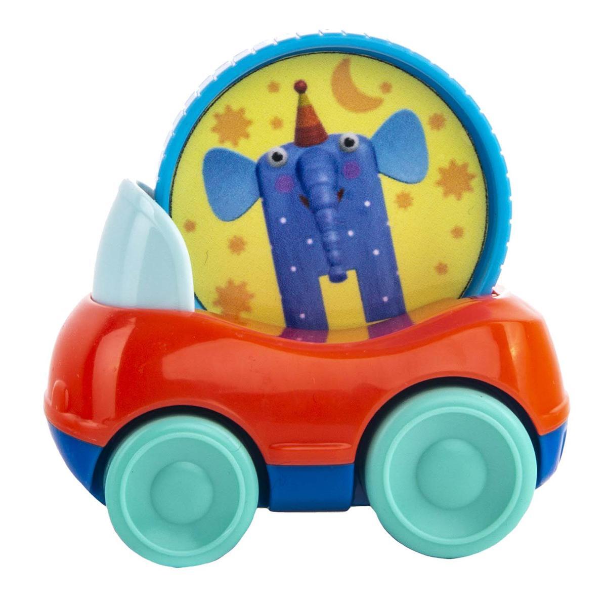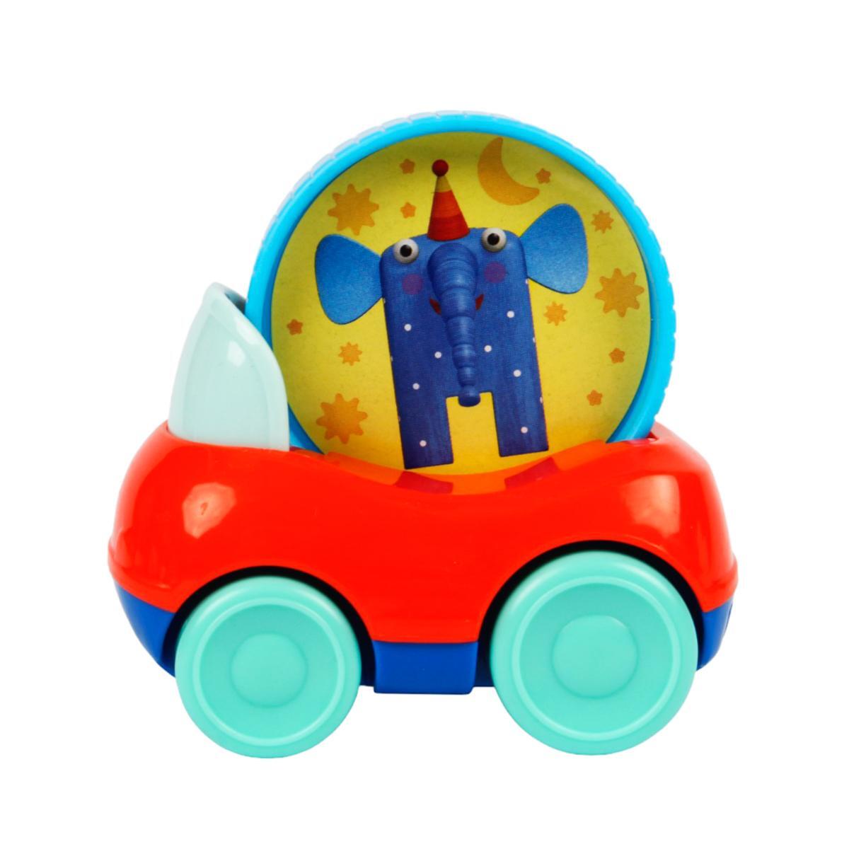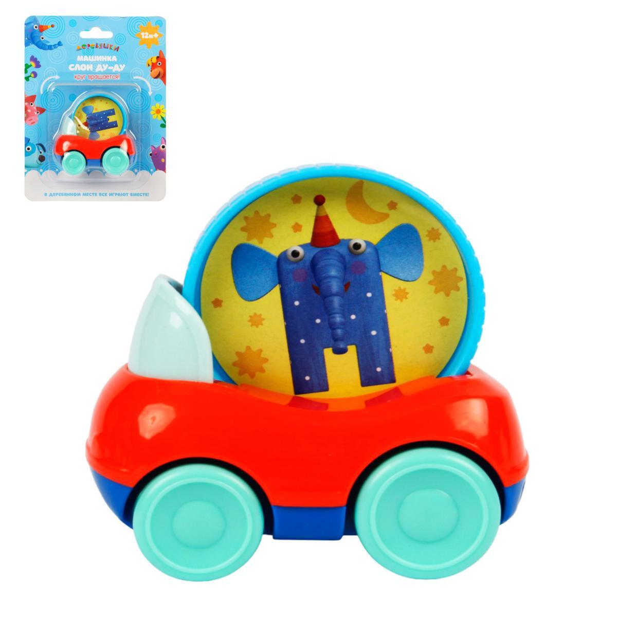 Машинка "Слон Ду-Ду" сочетает весёлую игру и обучение: вращающийся диск с персонажем стимулирует зрительное восприятие, а удобная форма корпуса развивает хватательные навыки. Идеальный старт для познания окружающего мира через тактильные ощущения и цветовое разнообразие.