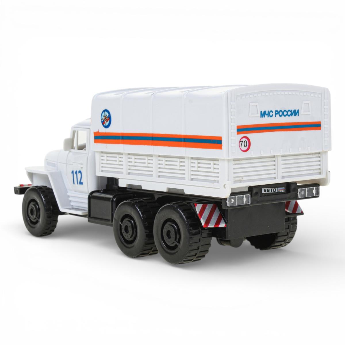 - Детализированный дизайн: модель украшена яркими полосами, надписями "МЧС РОССИИ" и стилизованными логотипами, создающими реалистичный образ спецтехники.