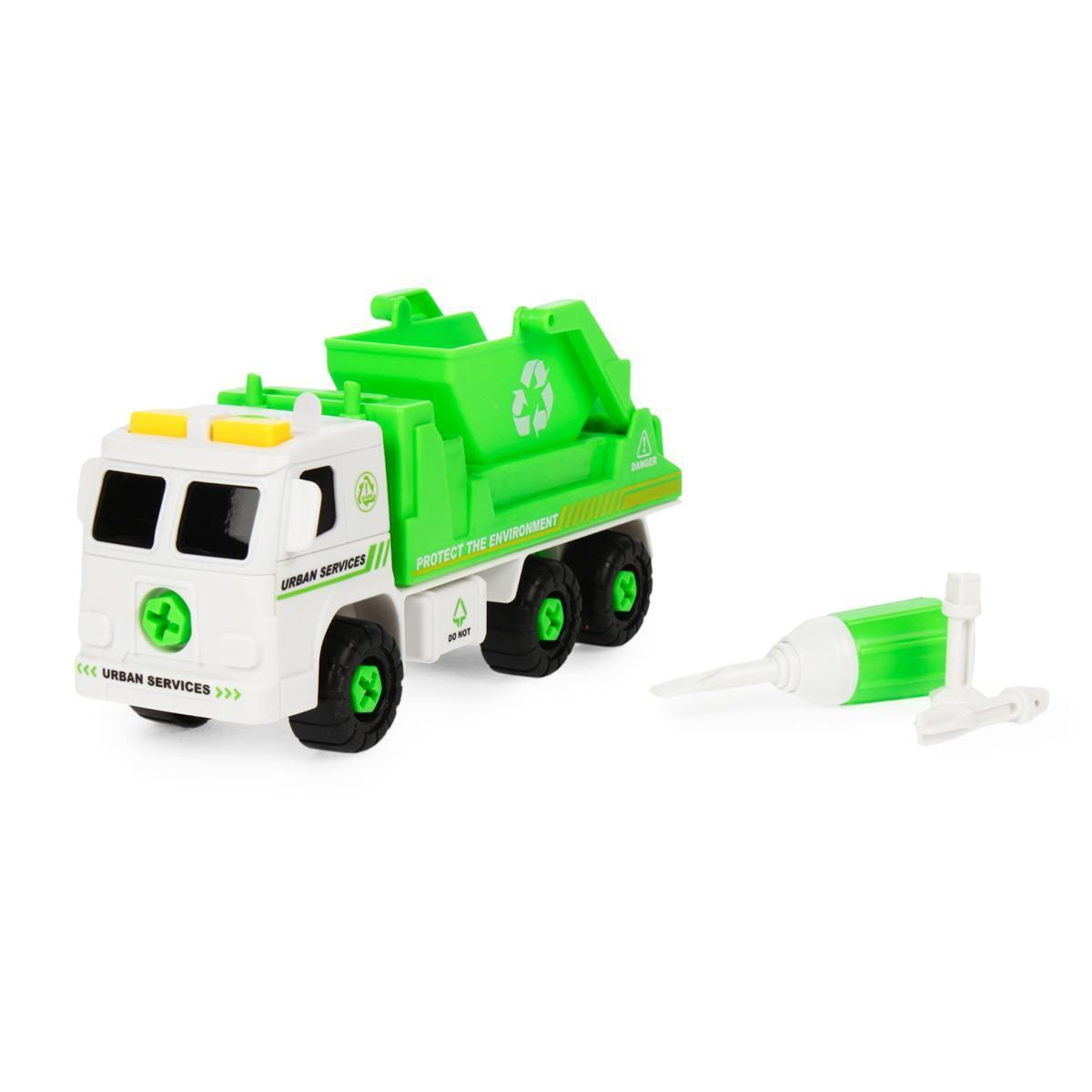 Конструктор-мусоровоз "URBAN SERVICES", 20 см, бело-зеленый, 3 насадки, ключ в комплекте