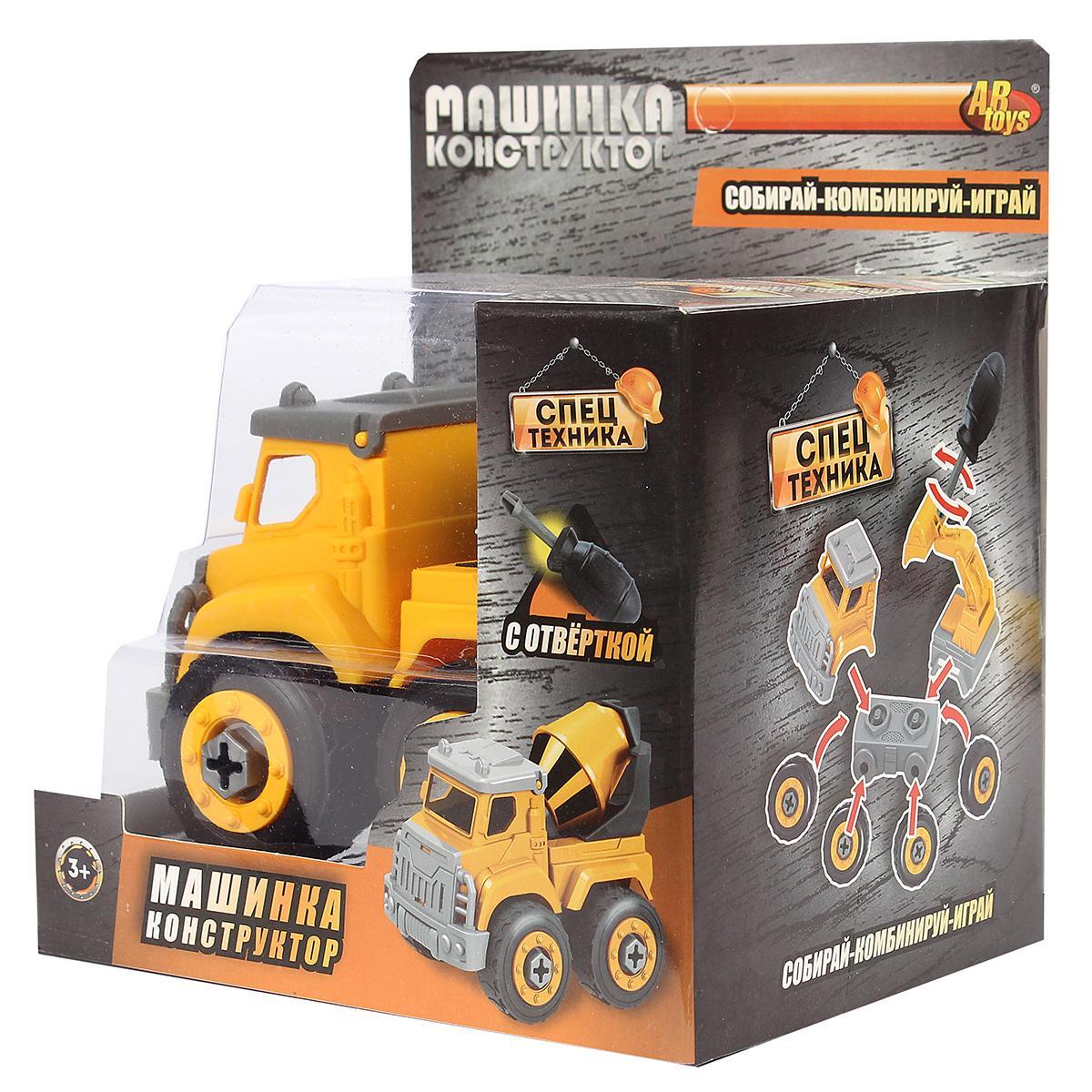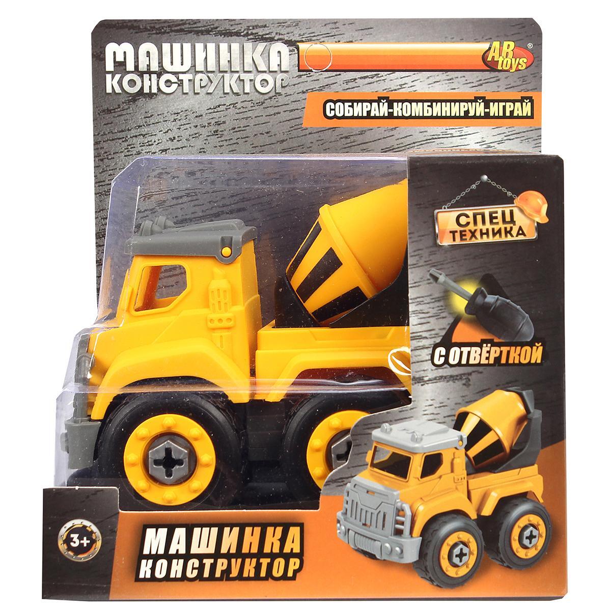 Машинка-конструктор "Городские службы", бетономешалка, желтая/серая, с отверткой