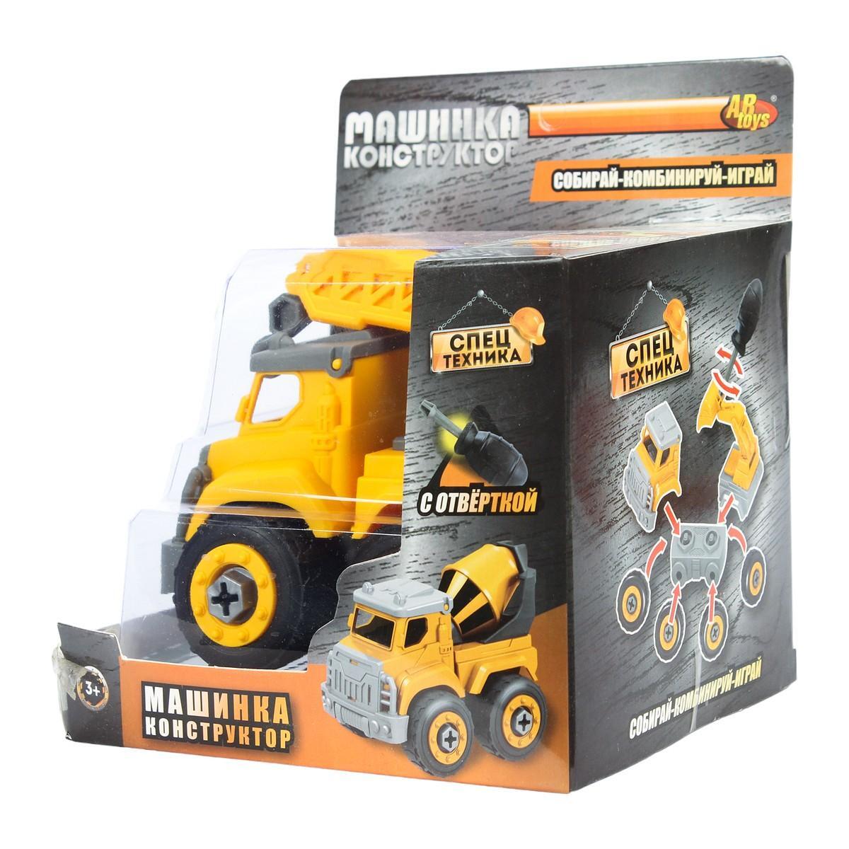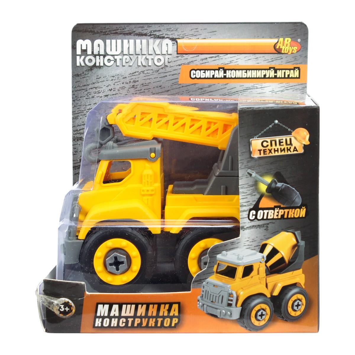 Машинка-конструктор «Спецтехника»: подъемный кран с отверткой, желто-серый, пластик, для развития моторики