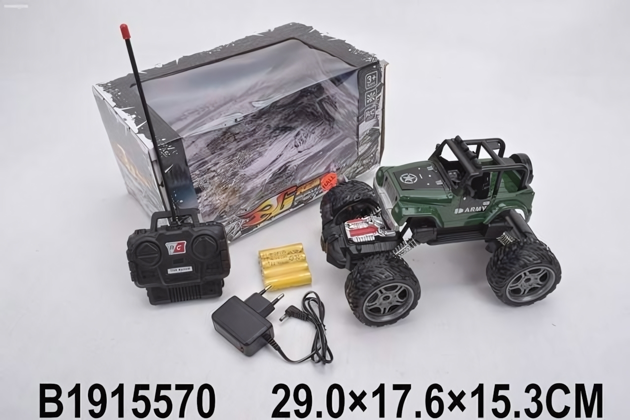 В комплект входит всё необходимое для старта: мощная машинка, удобный пульт управления с красной антенной, батарея и зарядное устройство. Просто зарядите аккумулятор – и можно начинать гонки!