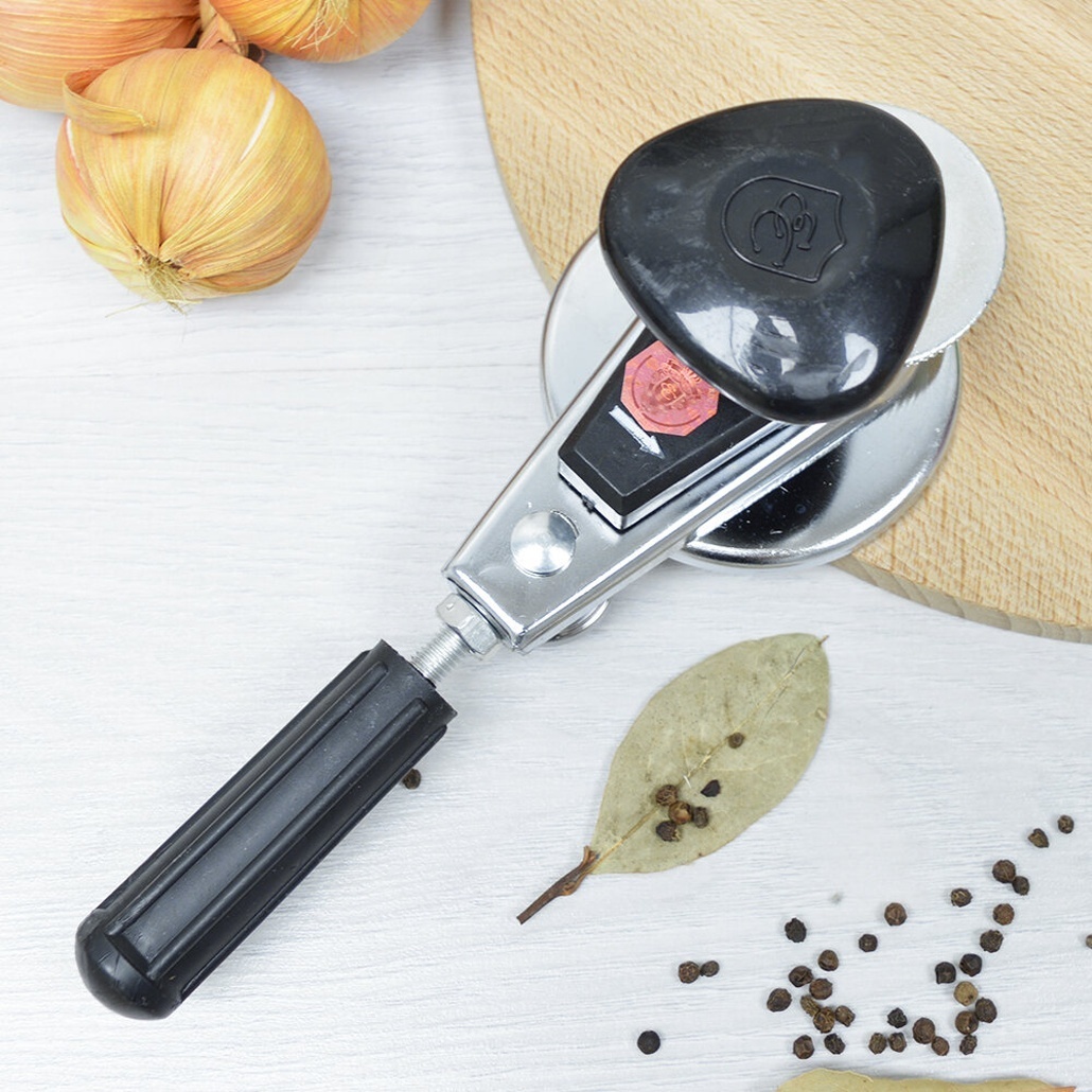 Практические детали: Материал — металл, дизайн включает металлическую ручку с рифленой накладкой для удобства, а также корпус в классическом черном и серебристом цвете. Размеры изделия позволяют использовать его с различными банками для домашнего консервирования.