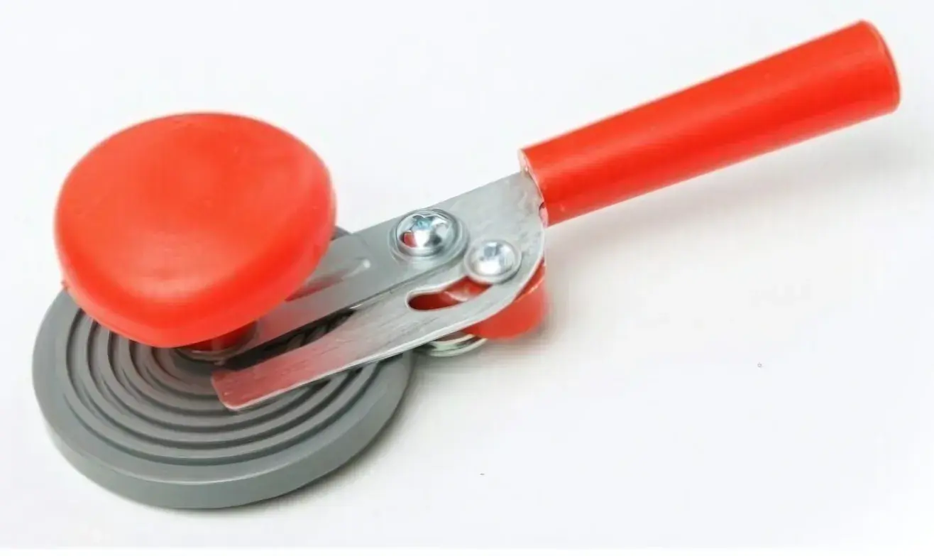 Рифленая поверхность рабочего узла предотвращает проскальзывание во время закатки. Красная маркировка поворотной ручки помогает контролировать силу нажатия. Совместима со стандартными жестяными крышками диаметром 82 мм — наиболее популярным размером для домашних заготовок.