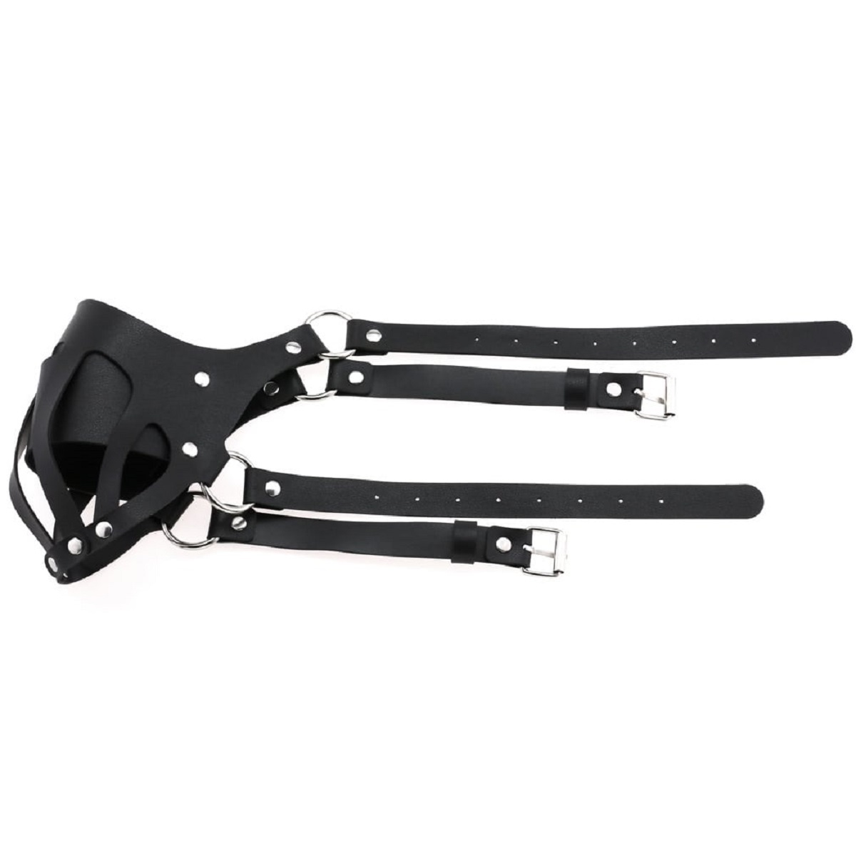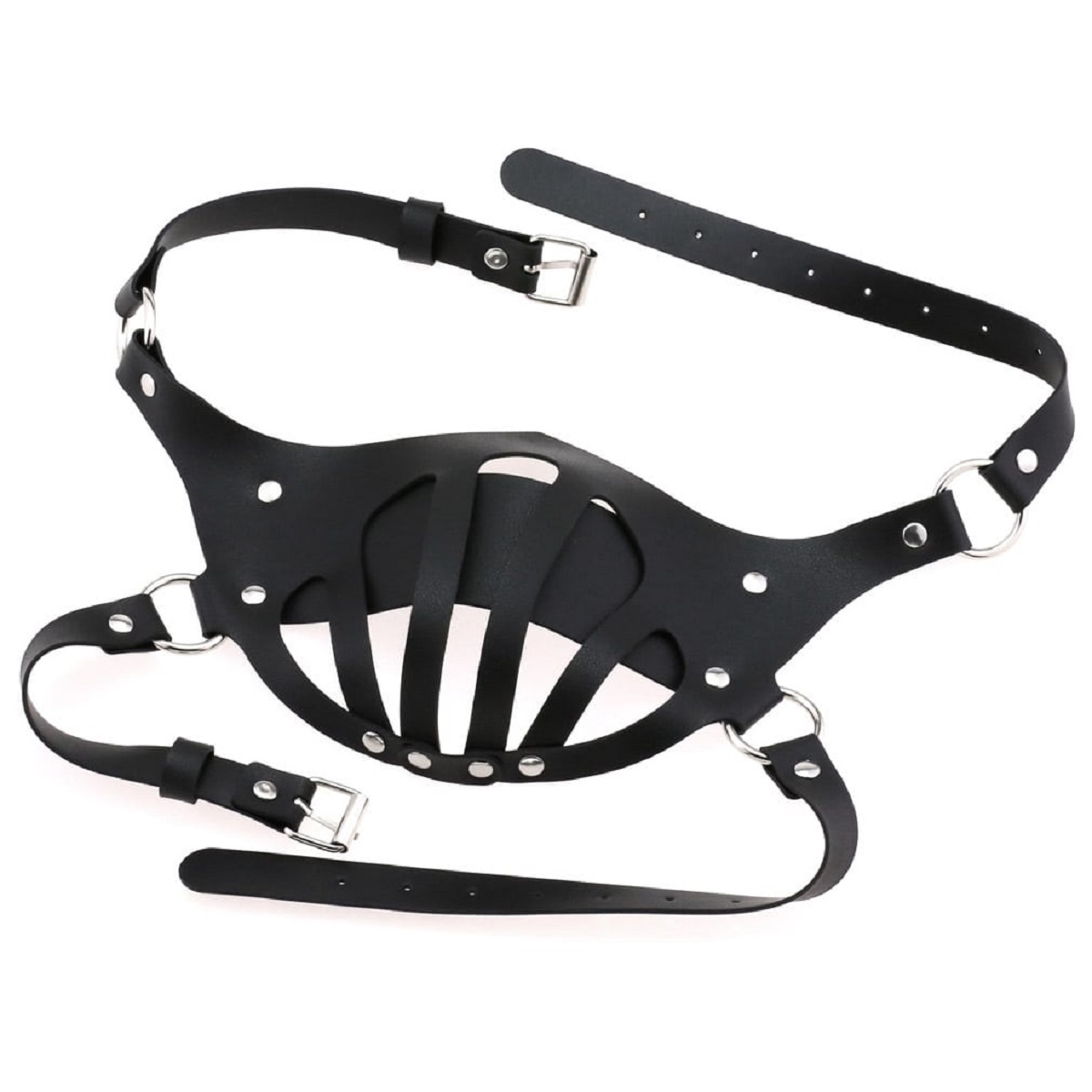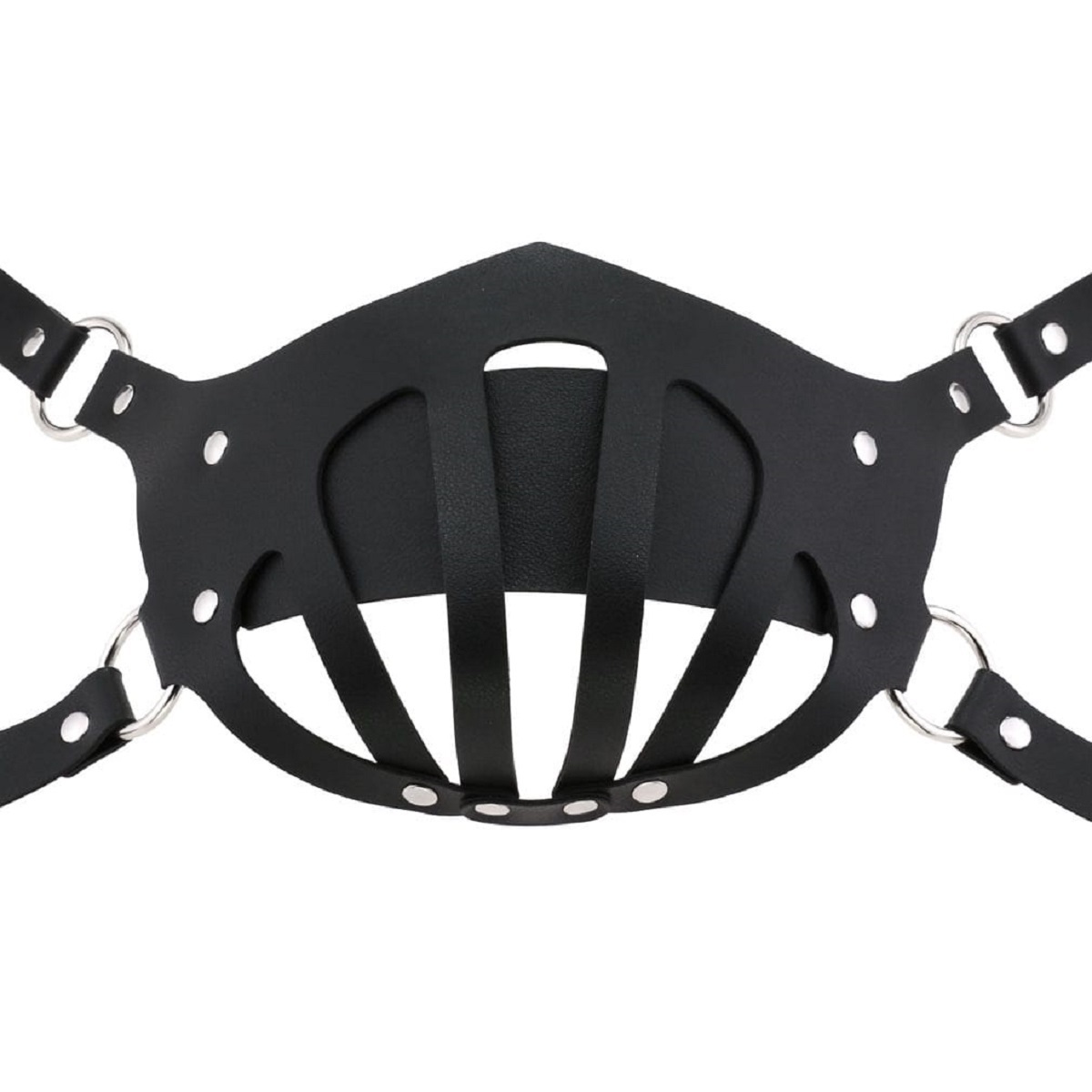 Эта маска из коллекции Disguise выполнена из прочной искусственной кожи с декоративными металлическими заклёпками и кольцами, что обеспечивает надежность и эстетичный внешний вид. Она создаёт уникальную атмосферу, позволяя раскрыть желание доминировать или подчиняться с комфортом и стилем.