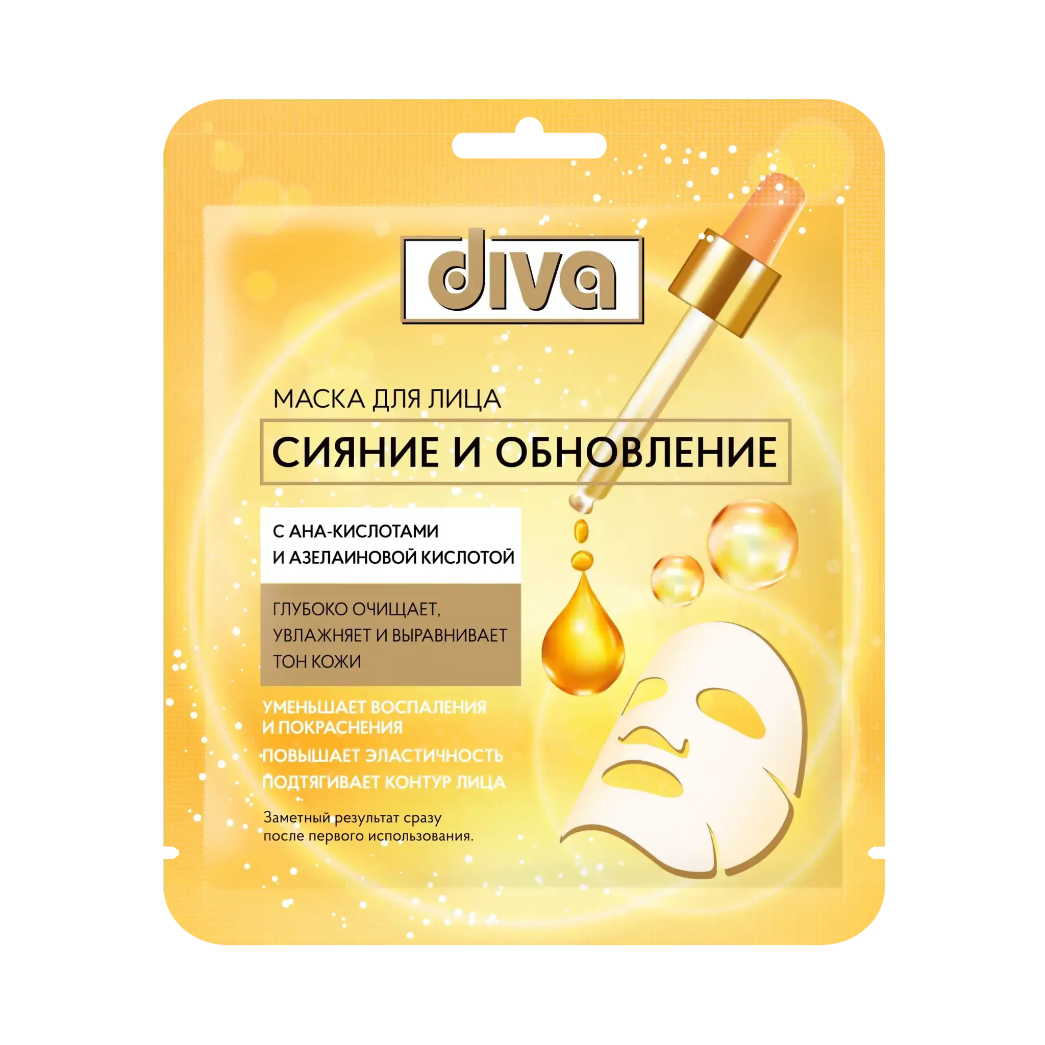 Маска для лица Diva 'Сияние и обновление', с AHA-кислотами, 1 шт