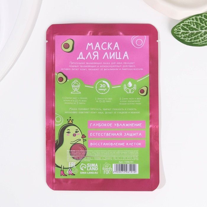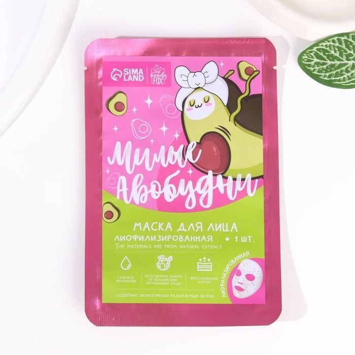 Подарите своей коже заботу и увлажнение с маской для лица «Милые Авобудни». Эта маска, созданная на основе натуральных экстрактов, обеспечивает глубокое увлажнение и восстановление клеток кожи. Яркий дизайн упаковки с изображением авокадо и улыбающегося персонажа поднимет вам настроение и сделает процесс ухода за лицом приятным.