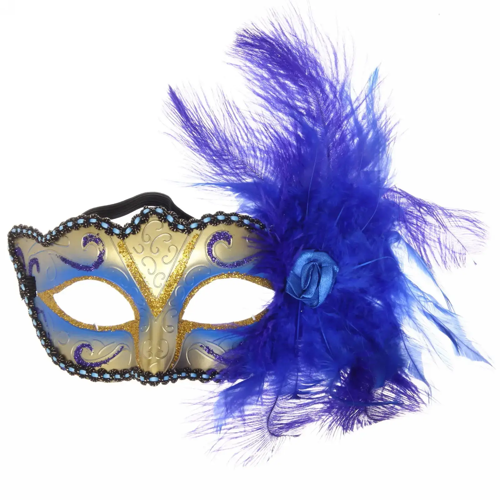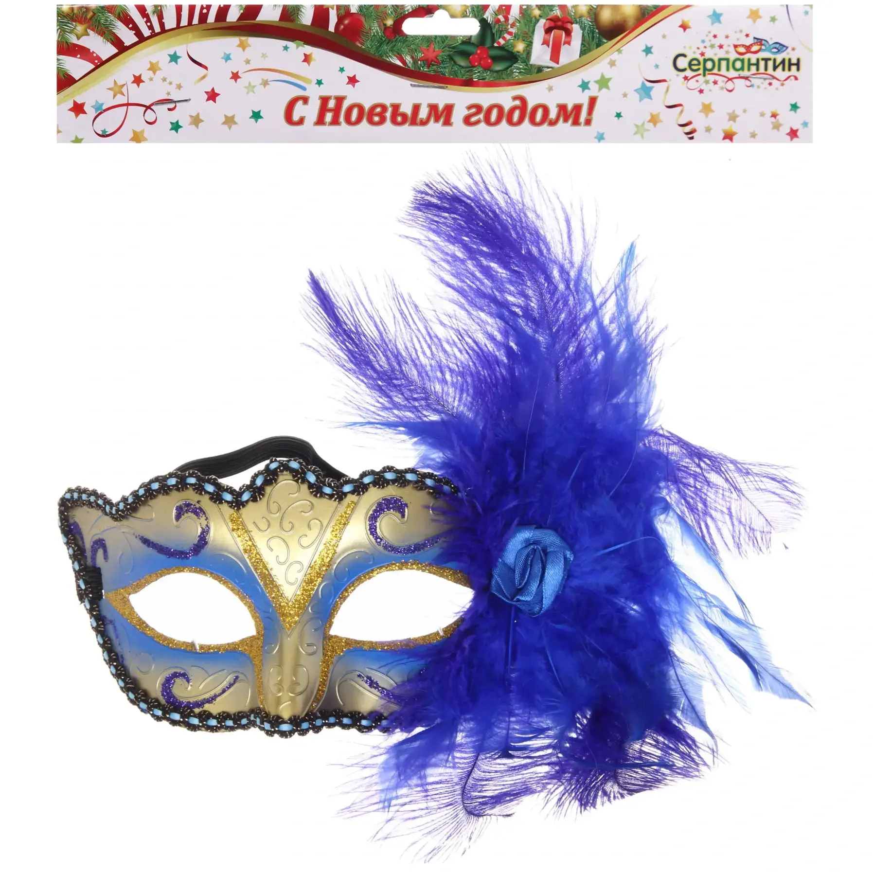 Маска карнавальная «Изящные перья», синий/золото, пластик/текстиль