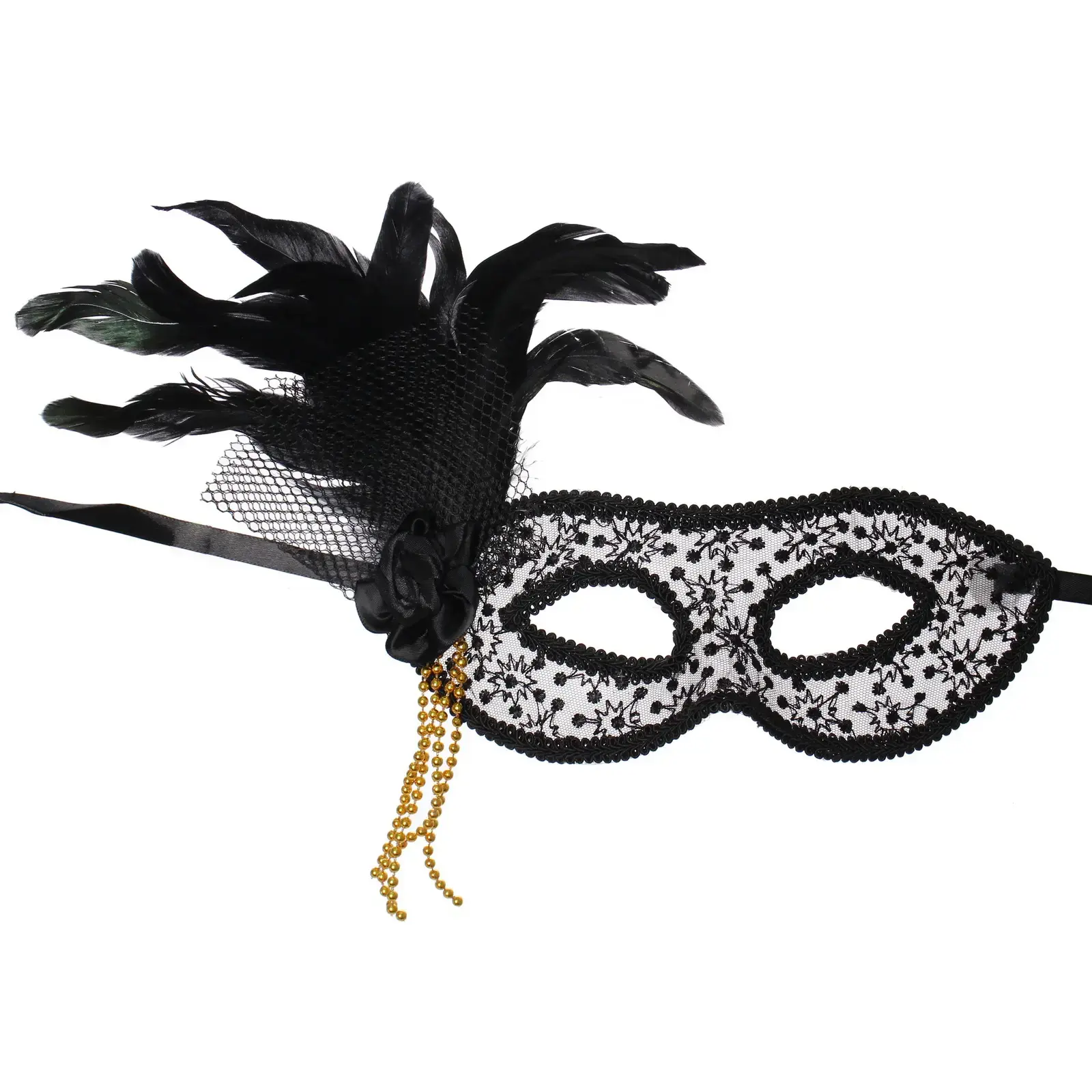 Маска выполнена из прочного пластика и текстиля, что гарантирует долговечность и сохранение формы. Декор из черных перьев и золотых бусин добавляет изысканности, а черная отделка по краям придает завершенность. Размеры маски составляют приблизительно 20-25 см в длину и 10 см в ширину, что делает её удобной для ношения. Не упустите возможность стать центром внимания на любом празднике с этой великолепной маской!