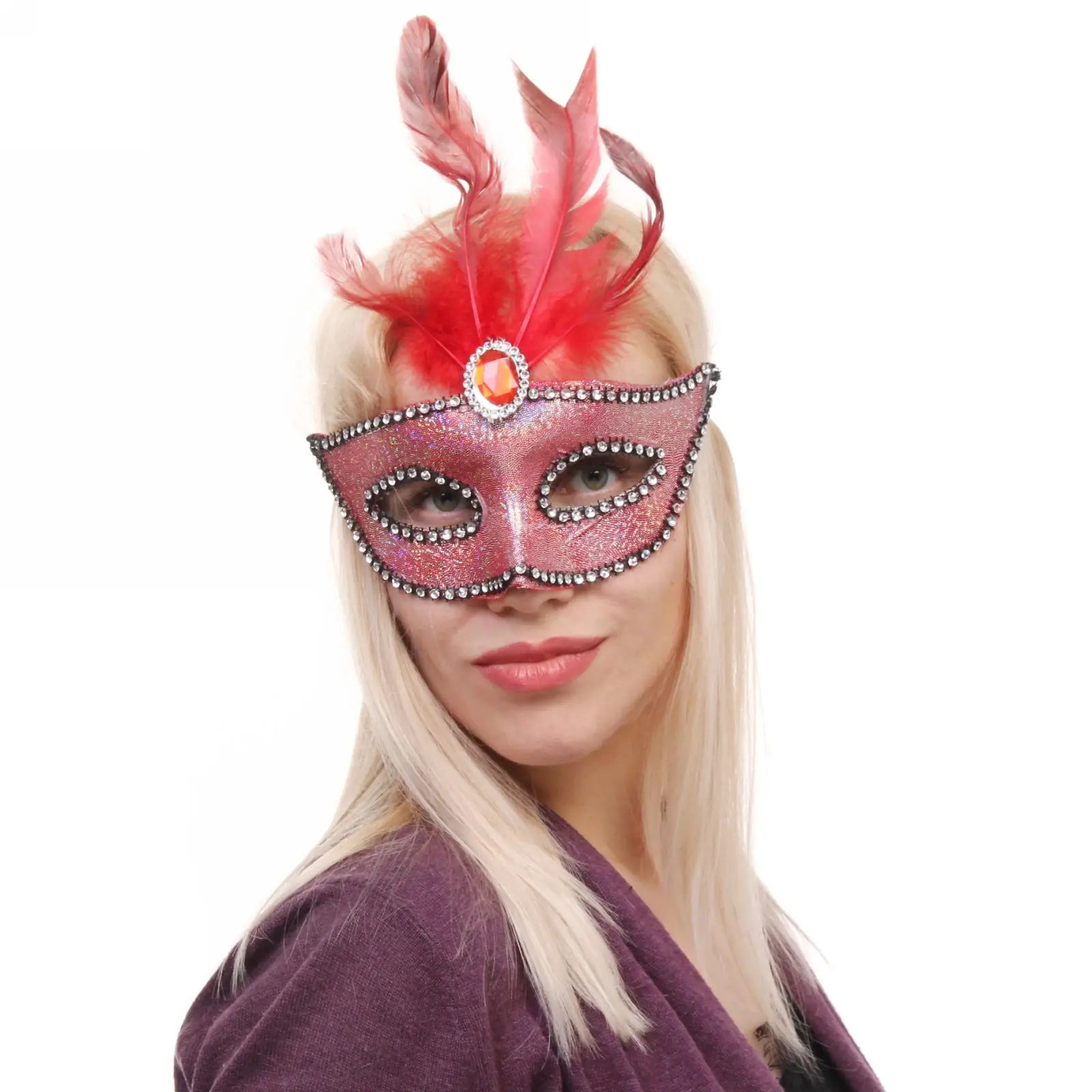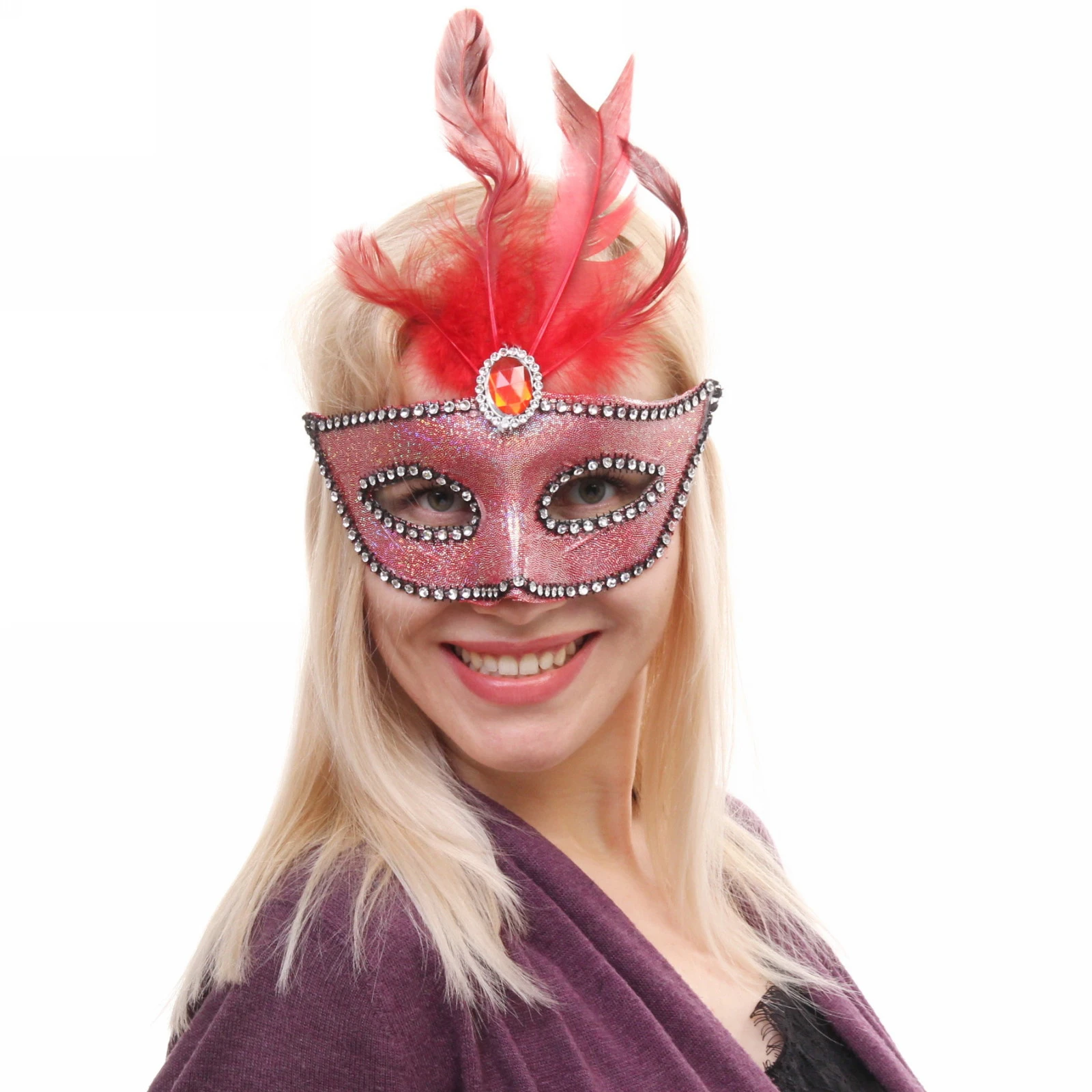 Маска поставляется в нескольких вариантах расцветки (красный, розовый, черный), что позволяет выбрать идеальный вариант под ваш наряд или концепцию мероприятия.