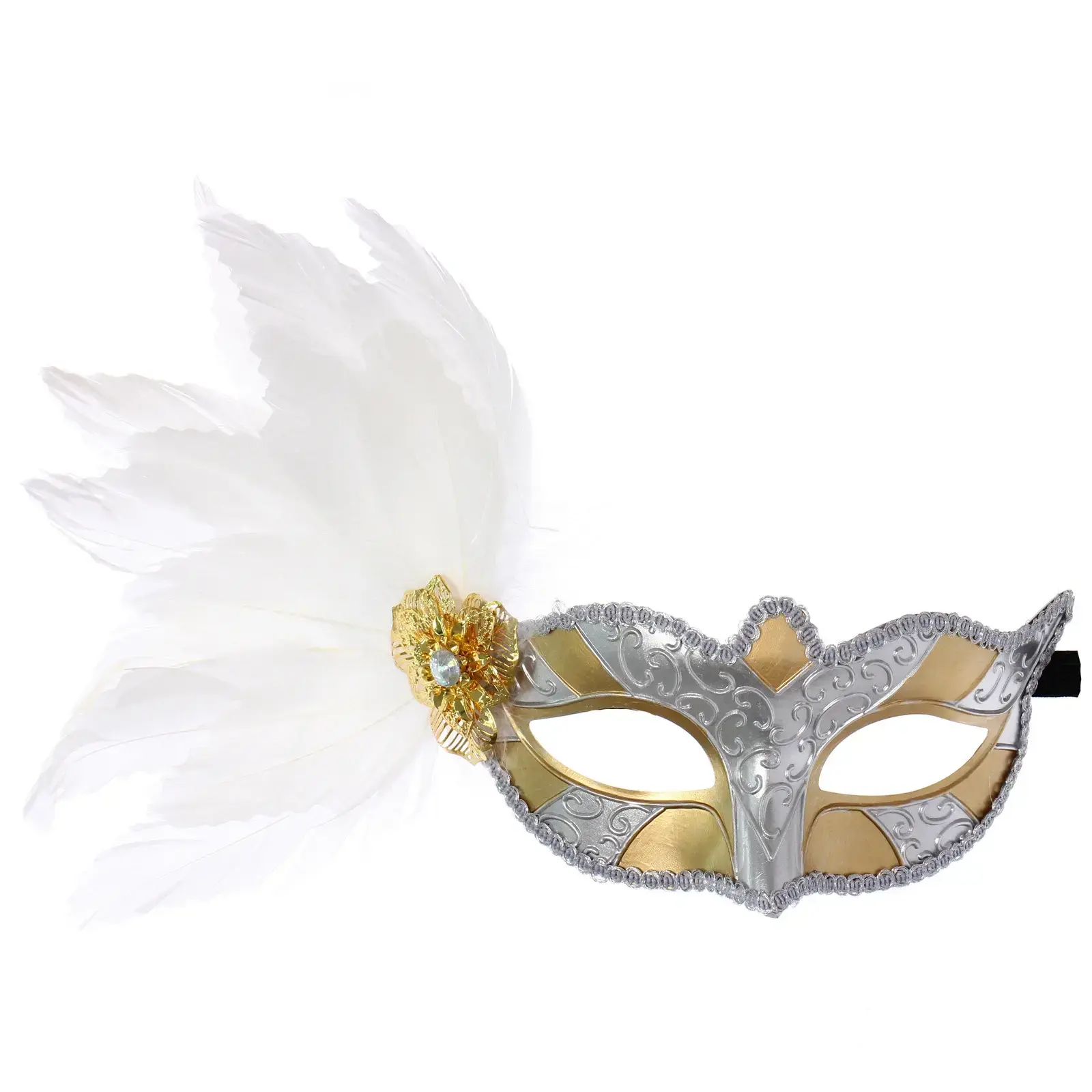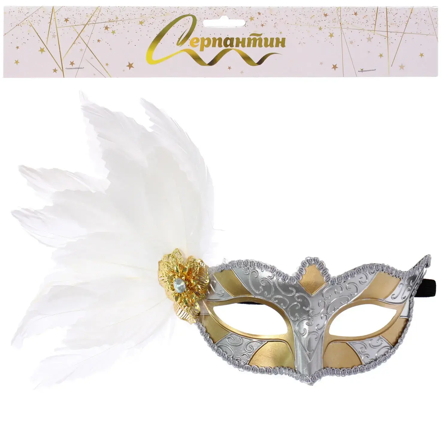 Маска «Нежность» отличается уникальным дизайном: сочетание серебристого и золотистого цветов создает эффектный контраст, а декоративные элементы, такие как белое перо и цветок с блестящим элементом, придают ей особую элегантность. Эта маска не только украсит ваш образ, но и подчеркнет вашу индивидуальность, делая вас центром внимания на любом мероприятии.