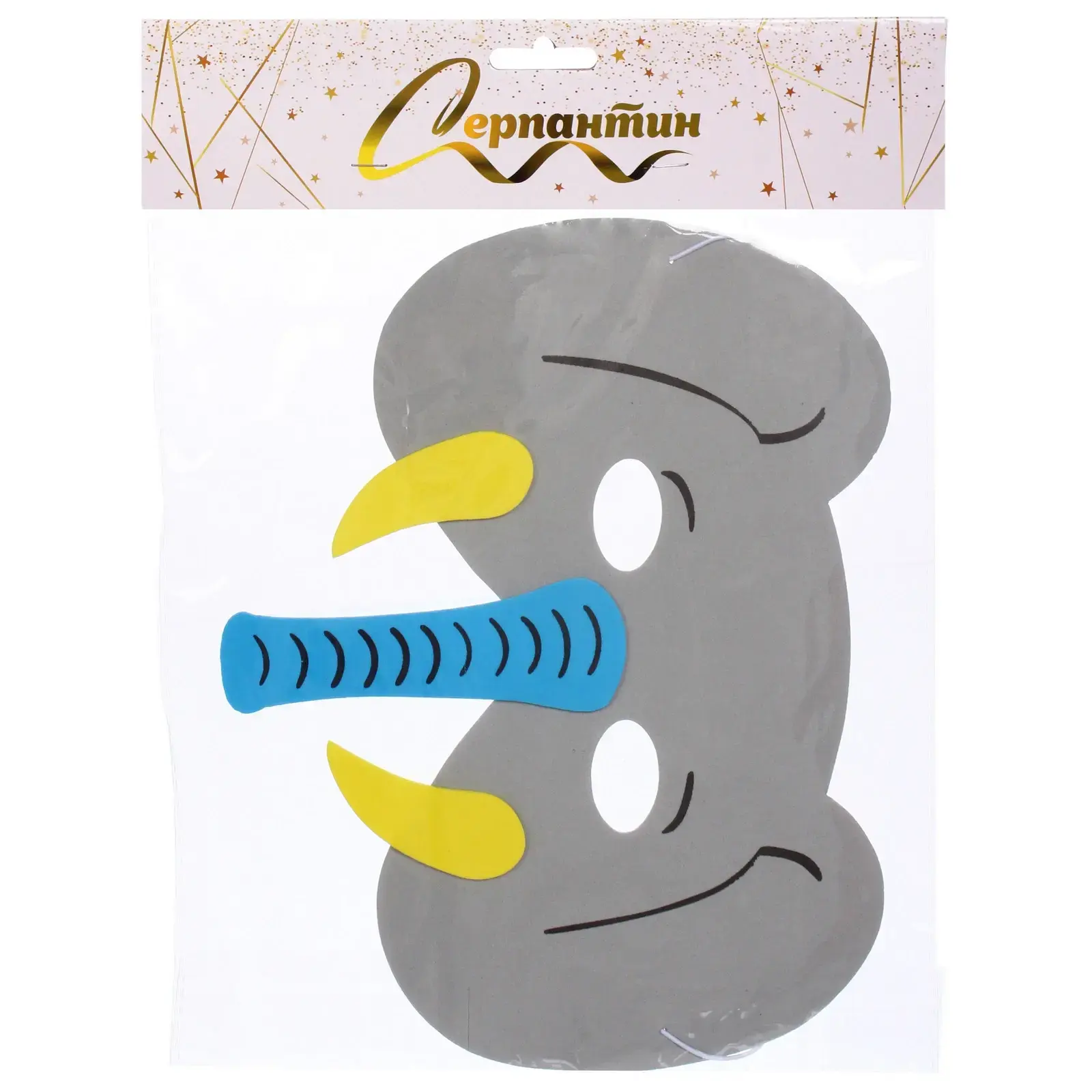 Маска карнавальная «Слон Ричард», ПВХ, серая с желтыми и голубыми деталями, резинка