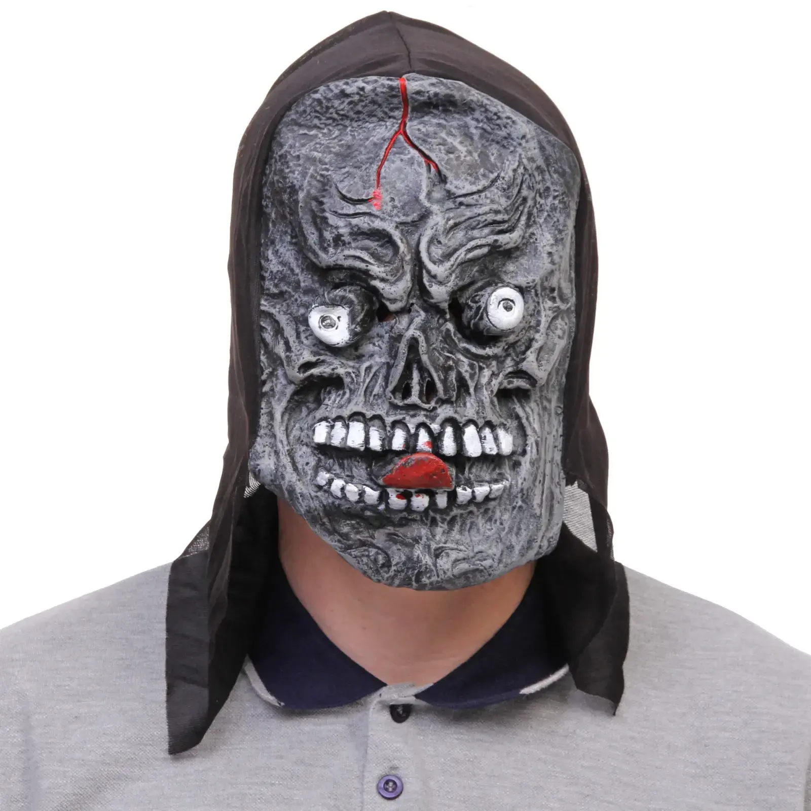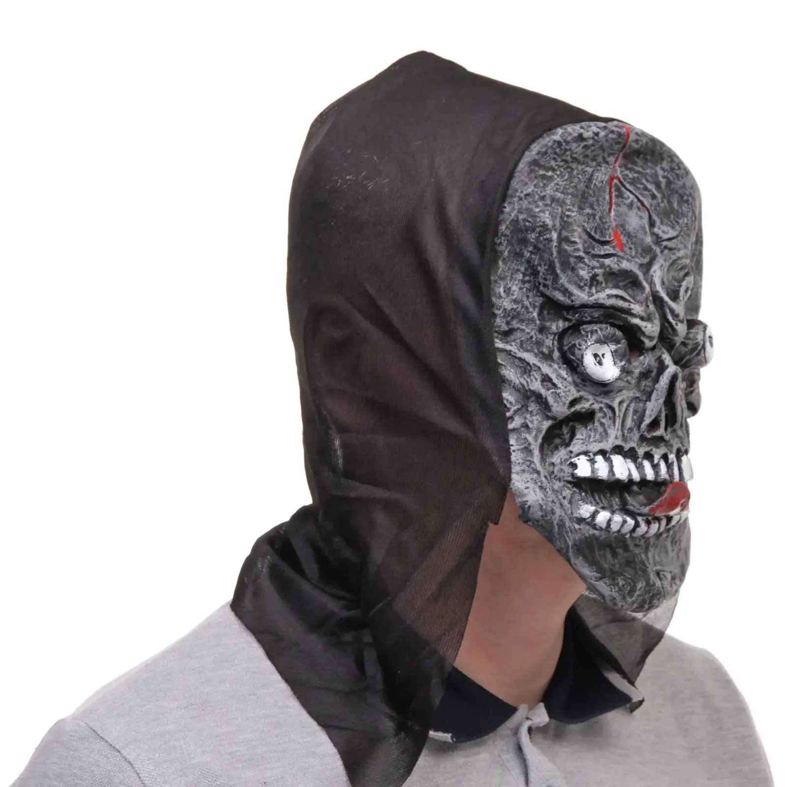 Маска выполнена в серо-черных тонах с эффектными красными акцентами, имитирующими кровь. Размер 16*24 см обеспечивает полное закрытие лица при сохранении комфорта. Благодаря комбинации жесткого пластика для формы и мягкой сетки для фиксации, маска удобно держится на лице продолжительное время.