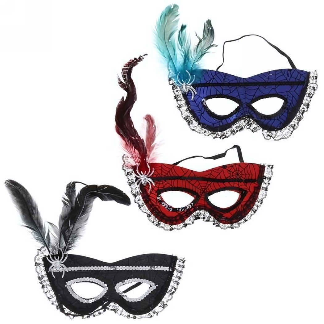 Маска карнавальная «Страшная красота», цвет в ассортименте, перья и блестки, черный, красный, синий