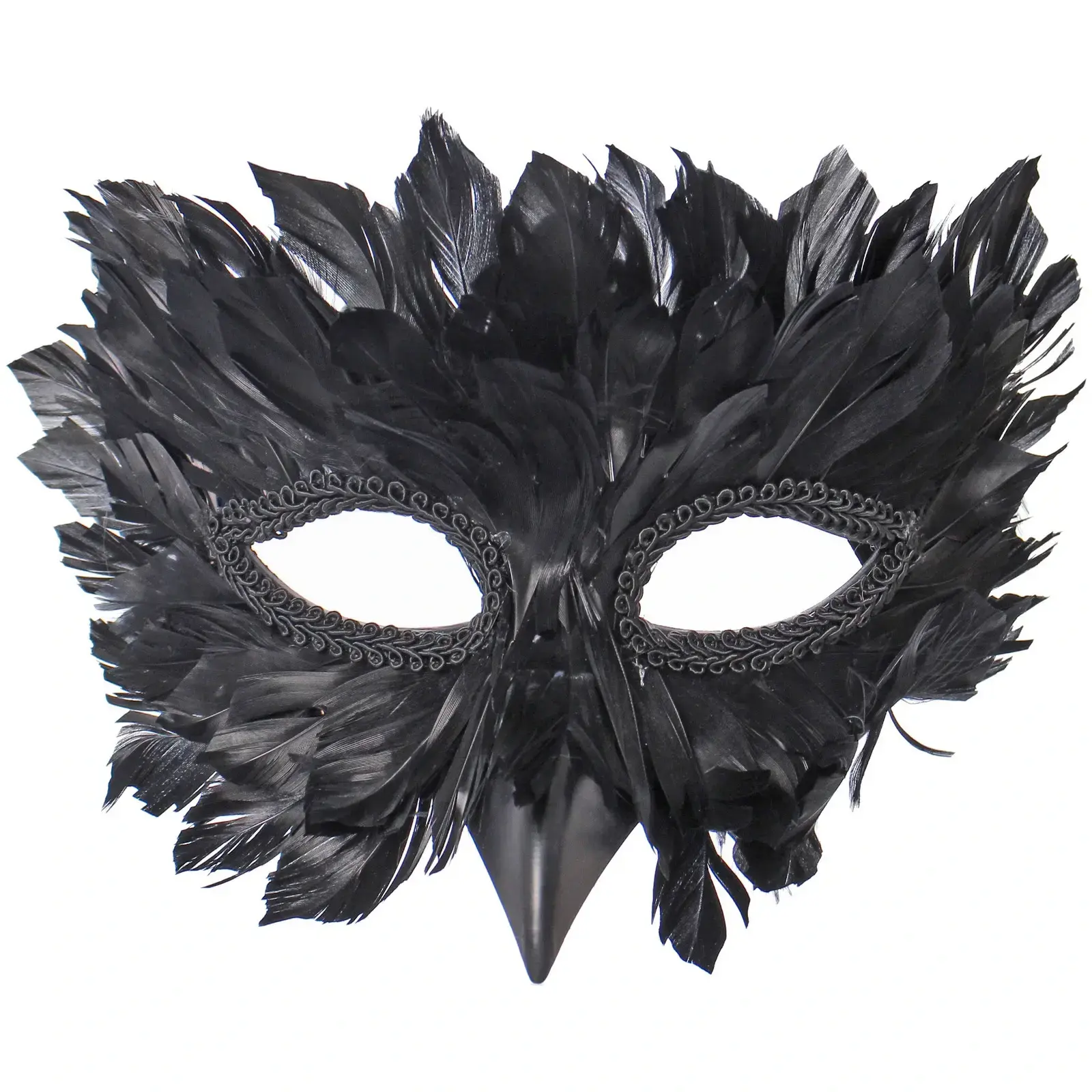 Почему стоит выбрать именно эту маску? Во-первых, ее оригинальная форма, напоминающая птицу, и декор из черных перьев создают эффектный и запоминающийся образ. Во-вторых, кружевные элементы вокруг глаз придают маске изысканности и элегантности. В-третьих, легкий вес маски позволяет носить ее долго без дискомфорта.