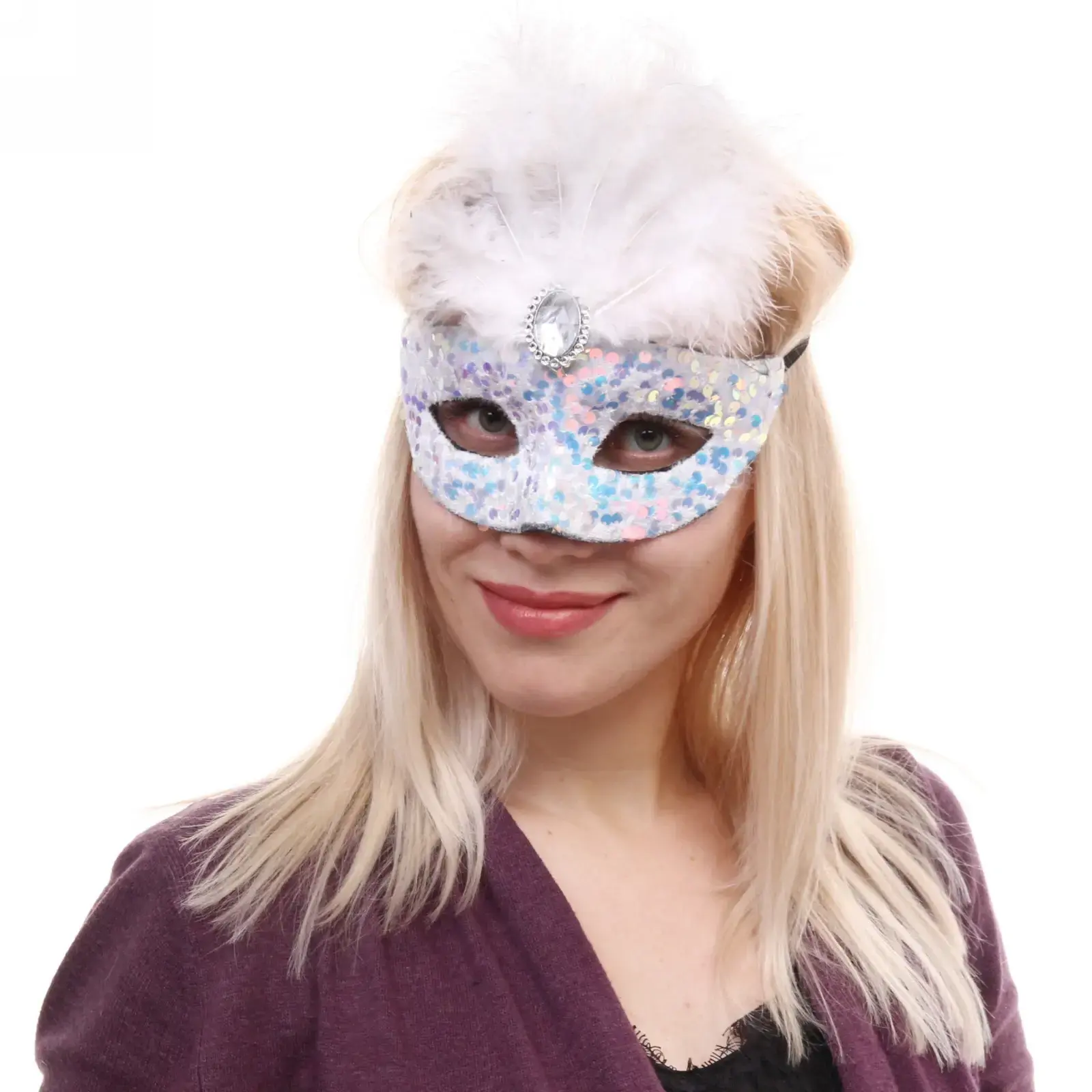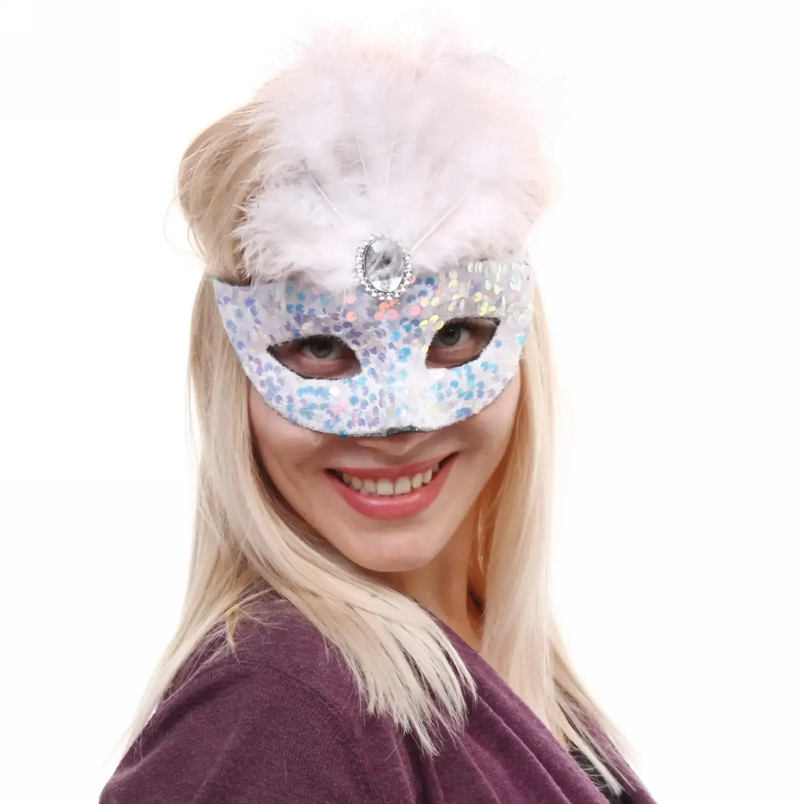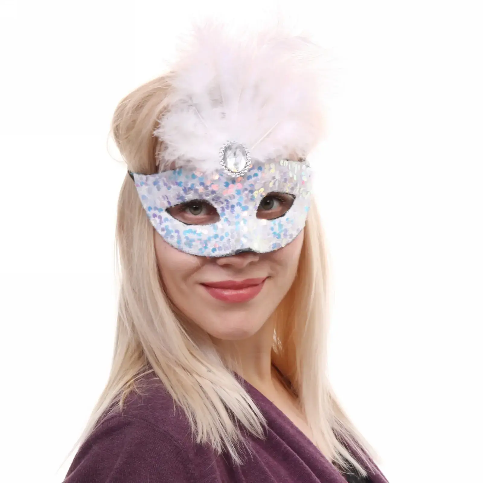 Маска выполнена из качественных материалов: пластика и текстиля, что обеспечивает её долговечность и комфорт при ношении. Эластичная лента надежно фиксирует маску на голове, позволяя вам наслаждаться праздником без лишних забот. Она подходит для всех, кто хочет добавить ярких красок в свой образ.