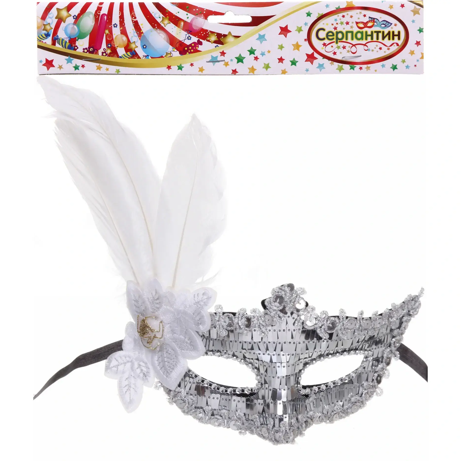 Маска выполнена из легкого пластика и текстиля, что обеспечивает комфортное ношение на протяжении всего мероприятия. Она подходит для взрослых и подростков, легко крепится на голове с помощью резинок, что позволяет не беспокоиться о том, что она может слететь во время танцев или активных движений.