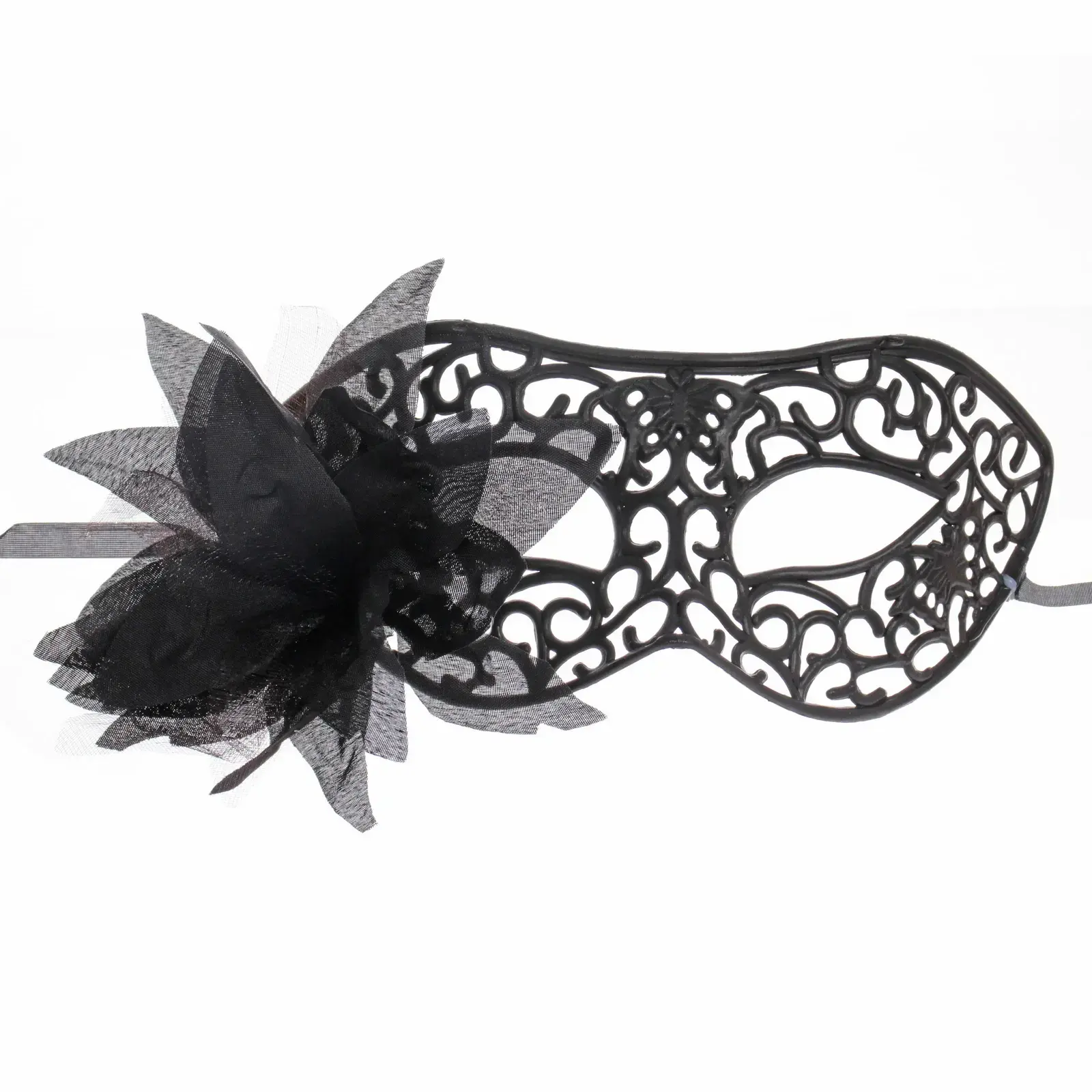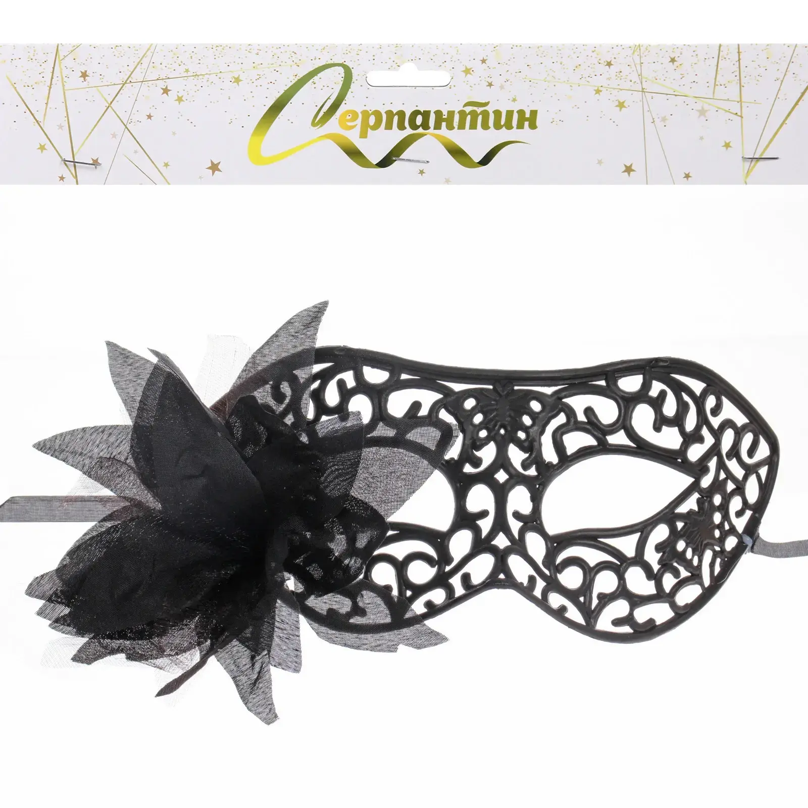 Эта маска выделяется своим уникальным дизайном и качественными материалами. Изготовленная из прочного пластика и текстиля, она сочетает в себе легкость и долговечность. Ажурный узор и черный цвет делают ее универсальной, подходящей для различных стилей и тематики мероприятий. Декоративный цветок из полупрозрачной ткани добавляет изысканности и шарма, делая маску по-настоящему уникальной.