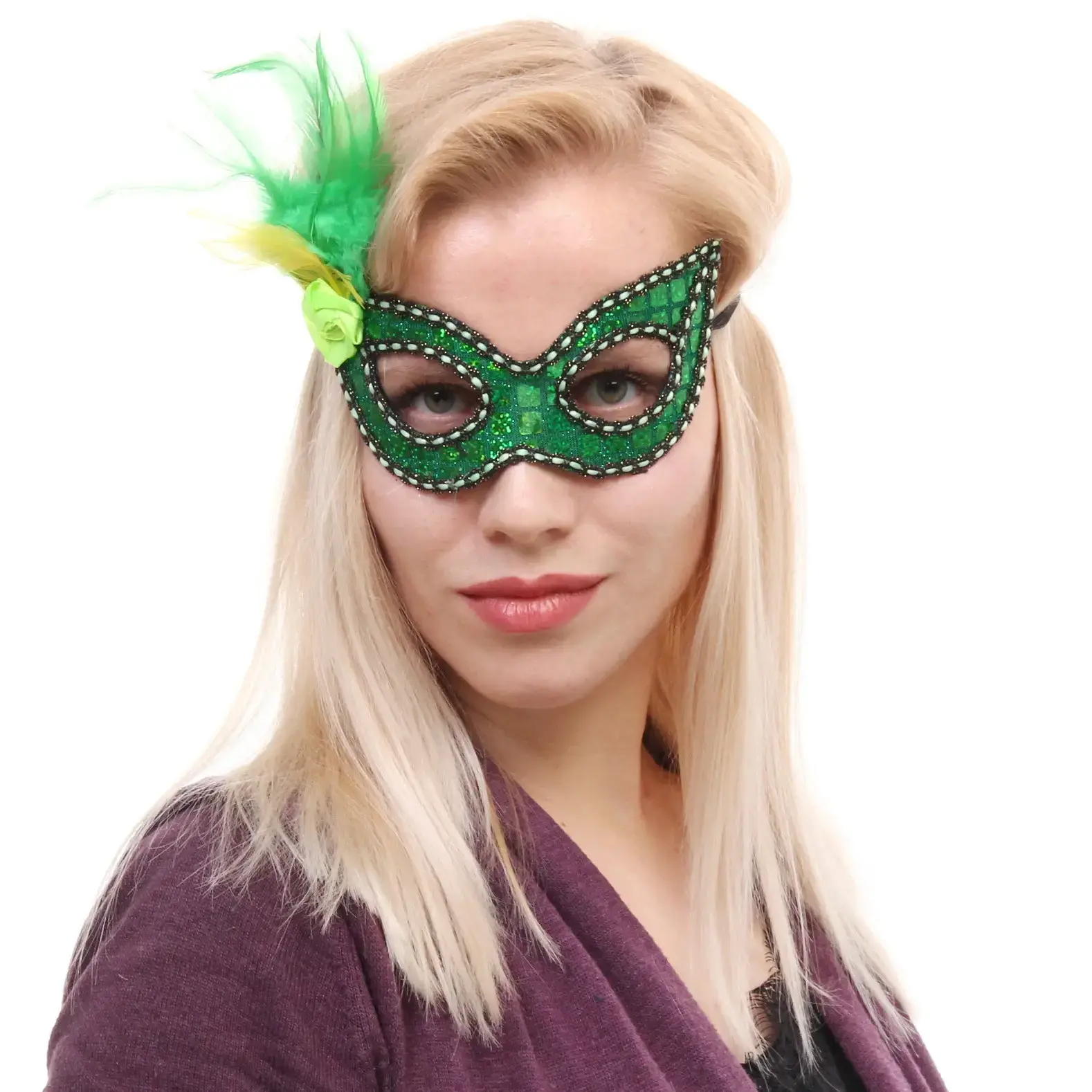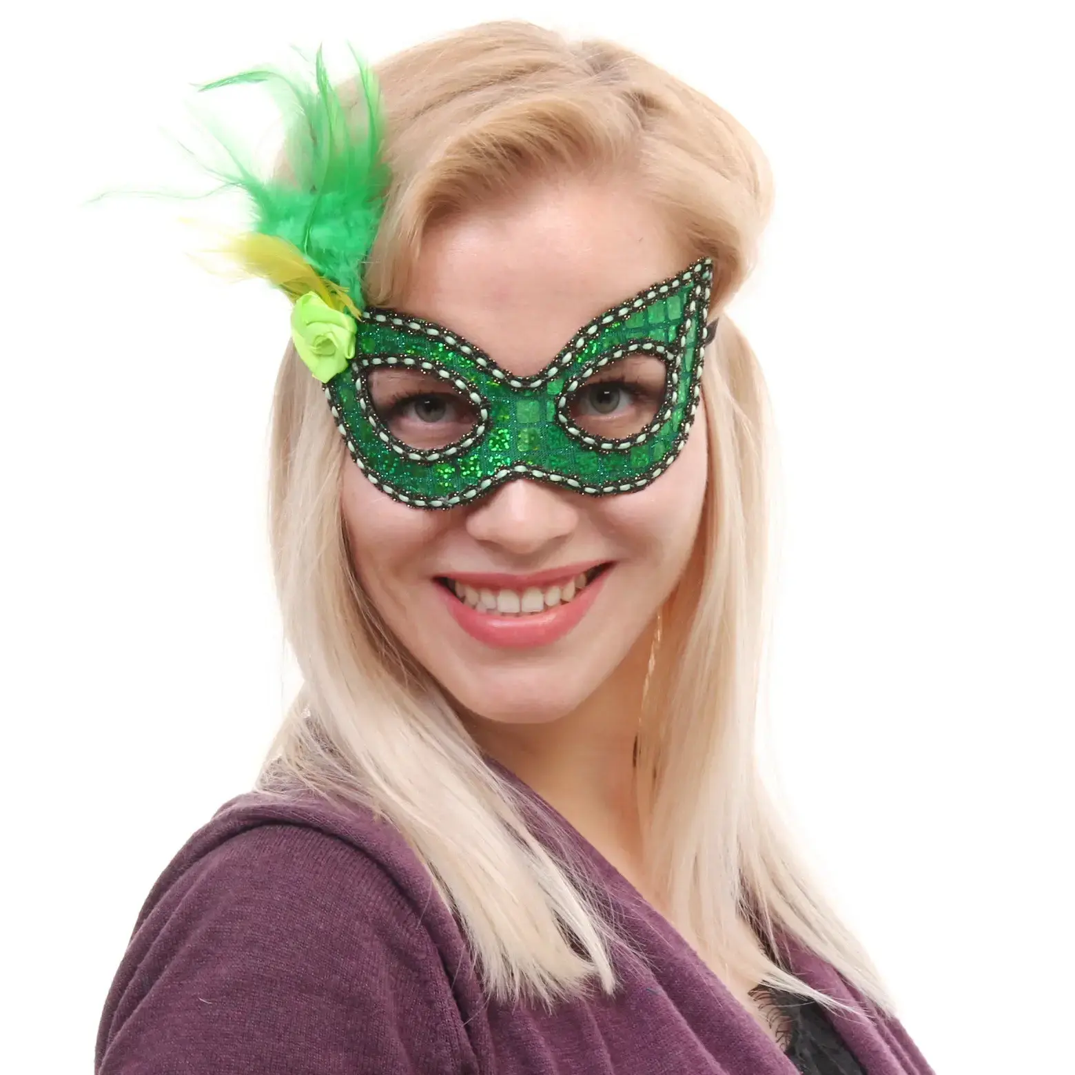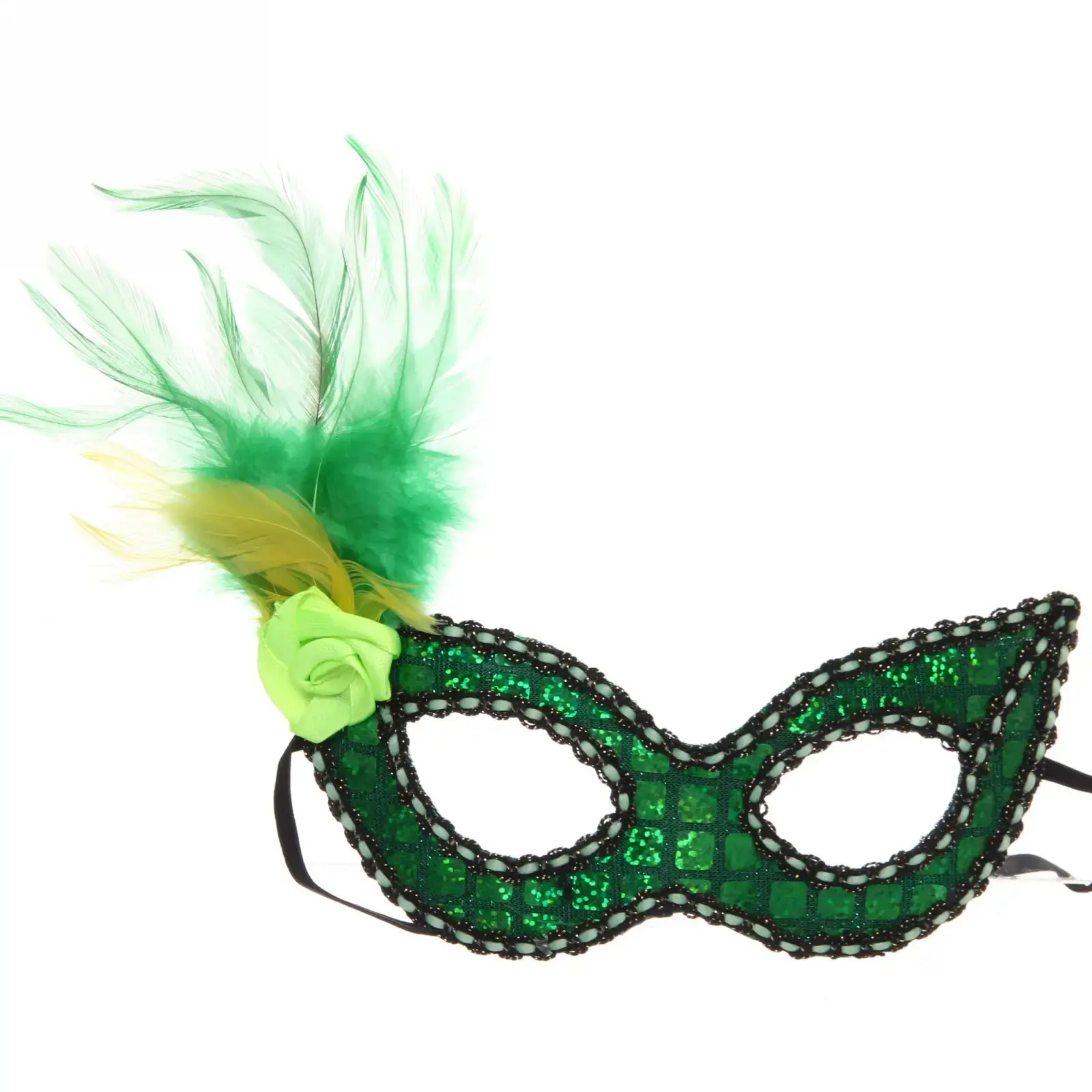 Маска карнавальная «Загадка» с перьями и стразами, зеленый/золото, пластик и текстиль, для новогодних вечеринок