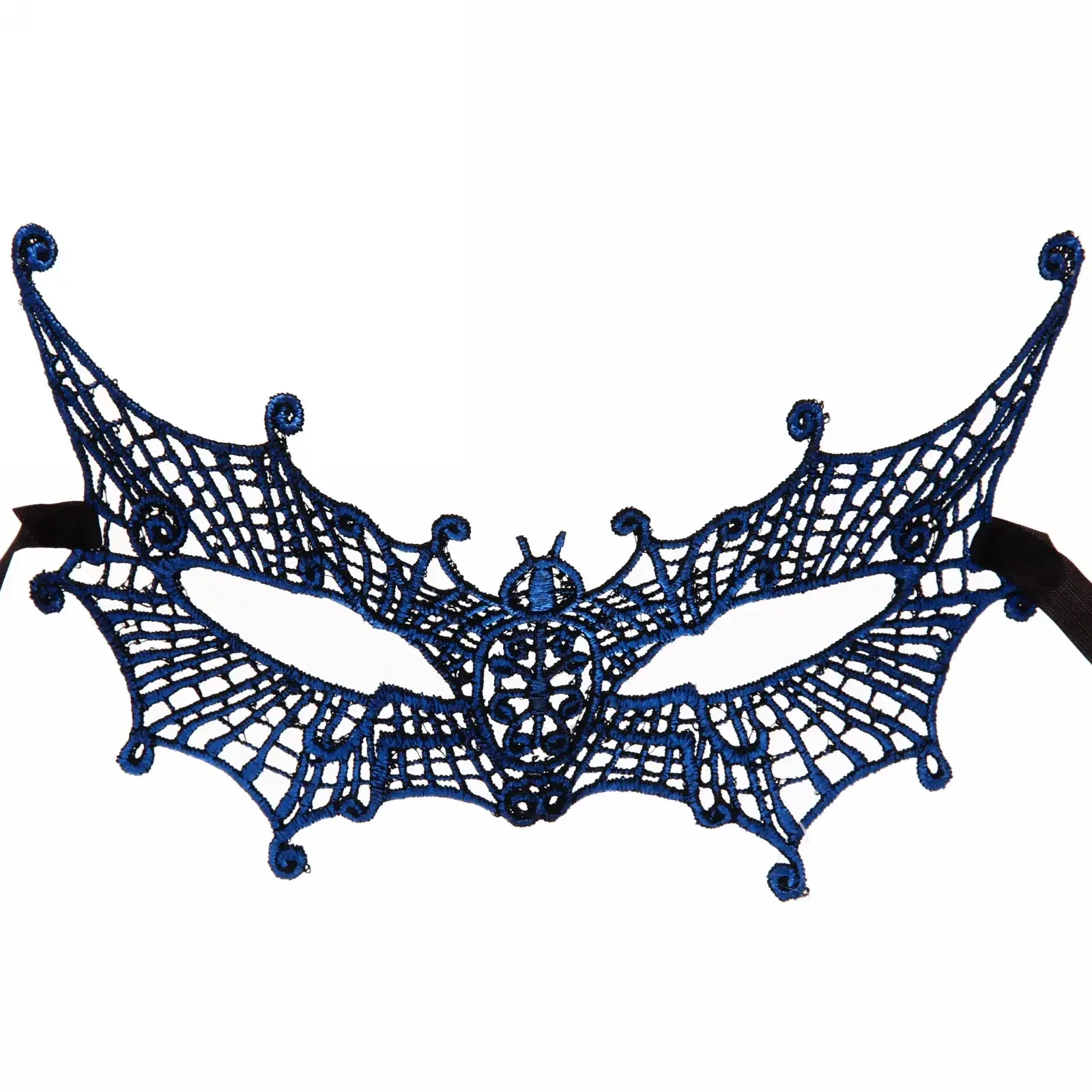 Маска подходит для различных тематических мероприятий, таких как Хэллоуин, карнавалы или вечеринки. Она легко крепится на голове с помощью тонкой черной ленты, что обеспечивает надежную фиксацию и удобство в ношении. Благодаря ассиметричному дизайну, напоминающему паутину, маска добавляет оригинальности вашему образу.