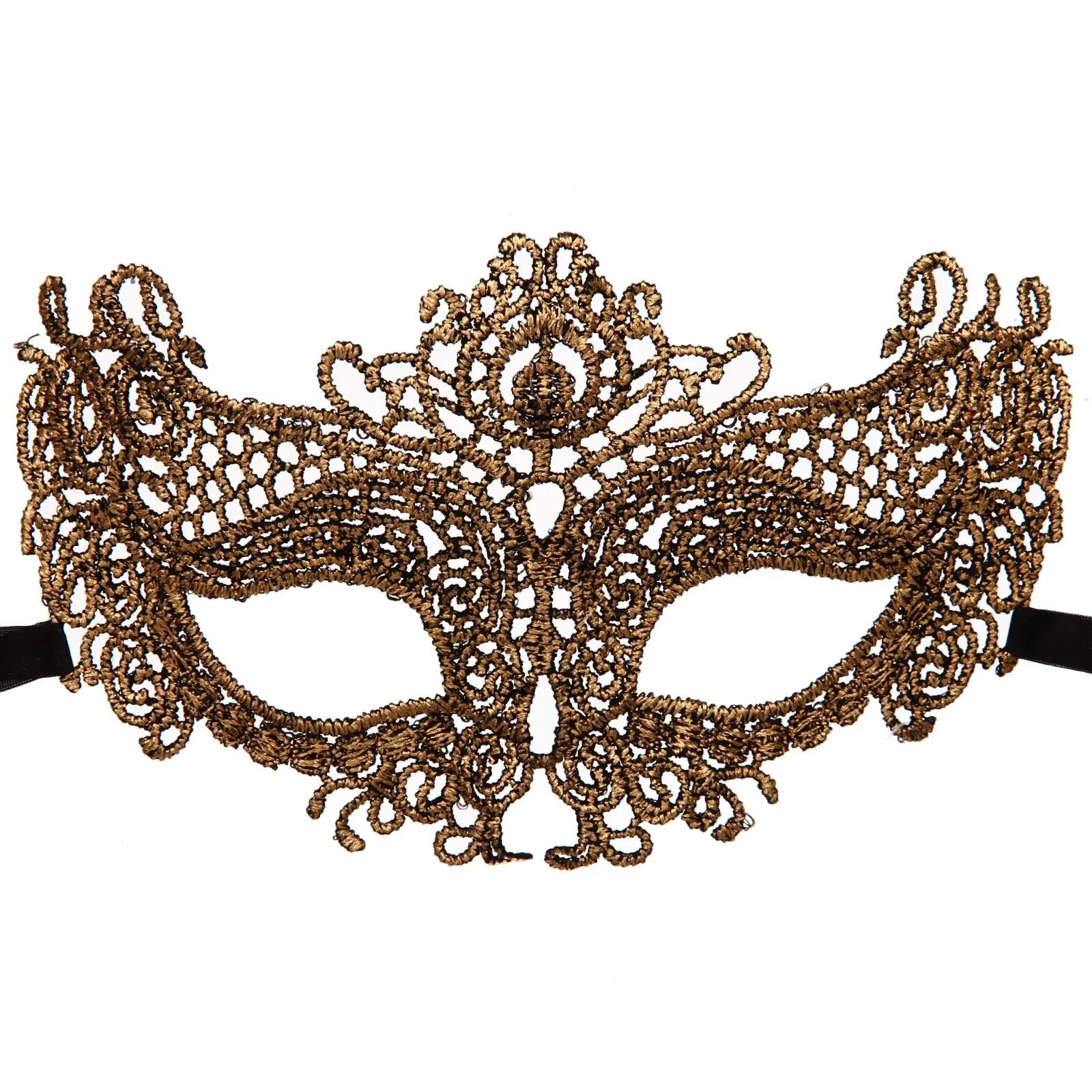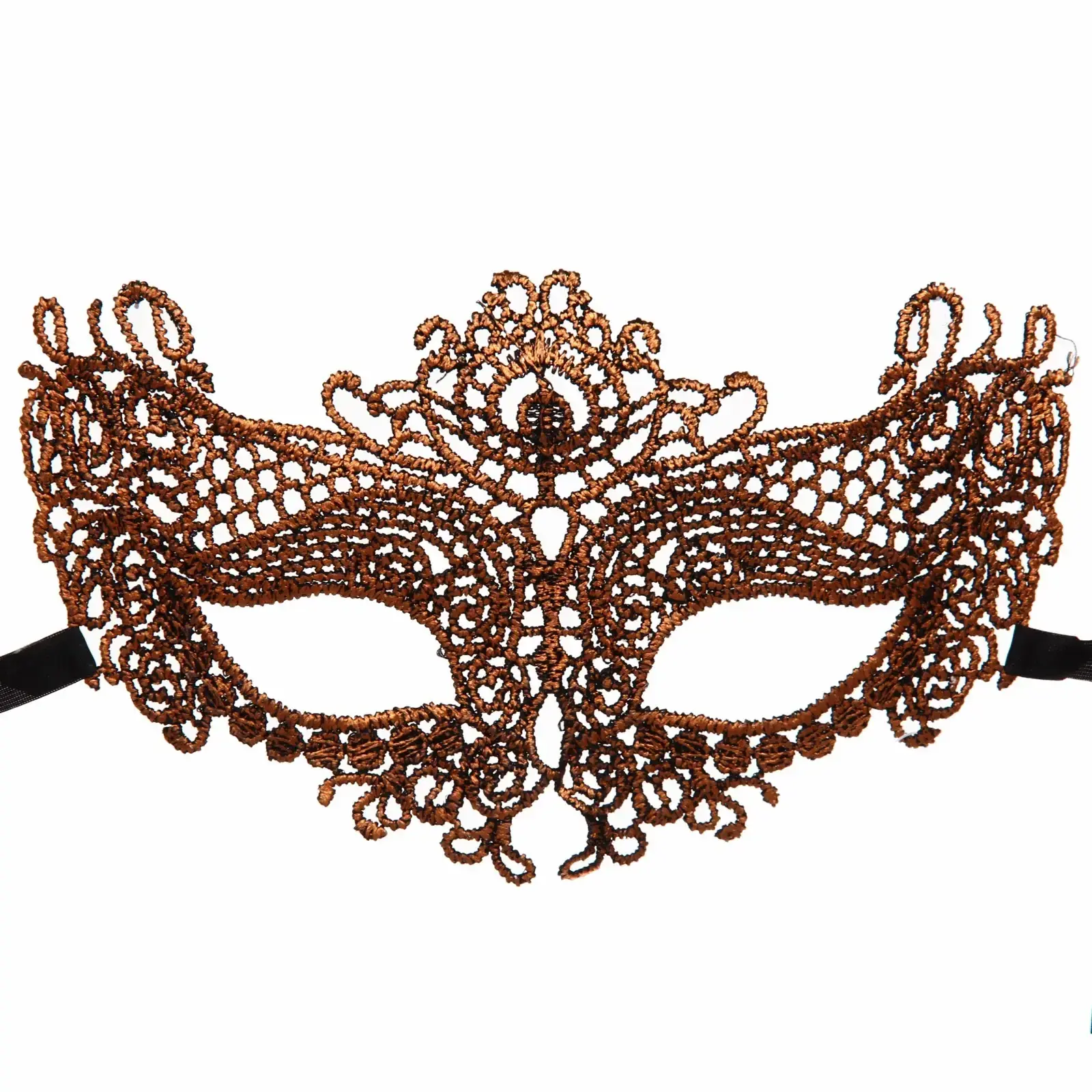 Маска предназначена для ношения на лице и подходит для взрослых. Она легко фиксируется с помощью черных завязок, что позволяет удобно регулировать посадку. Благодаря ажурному дизайну и выразительным узорам, маска не только скрывает лицо, но и добавляет вашему образу нотку таинственности.