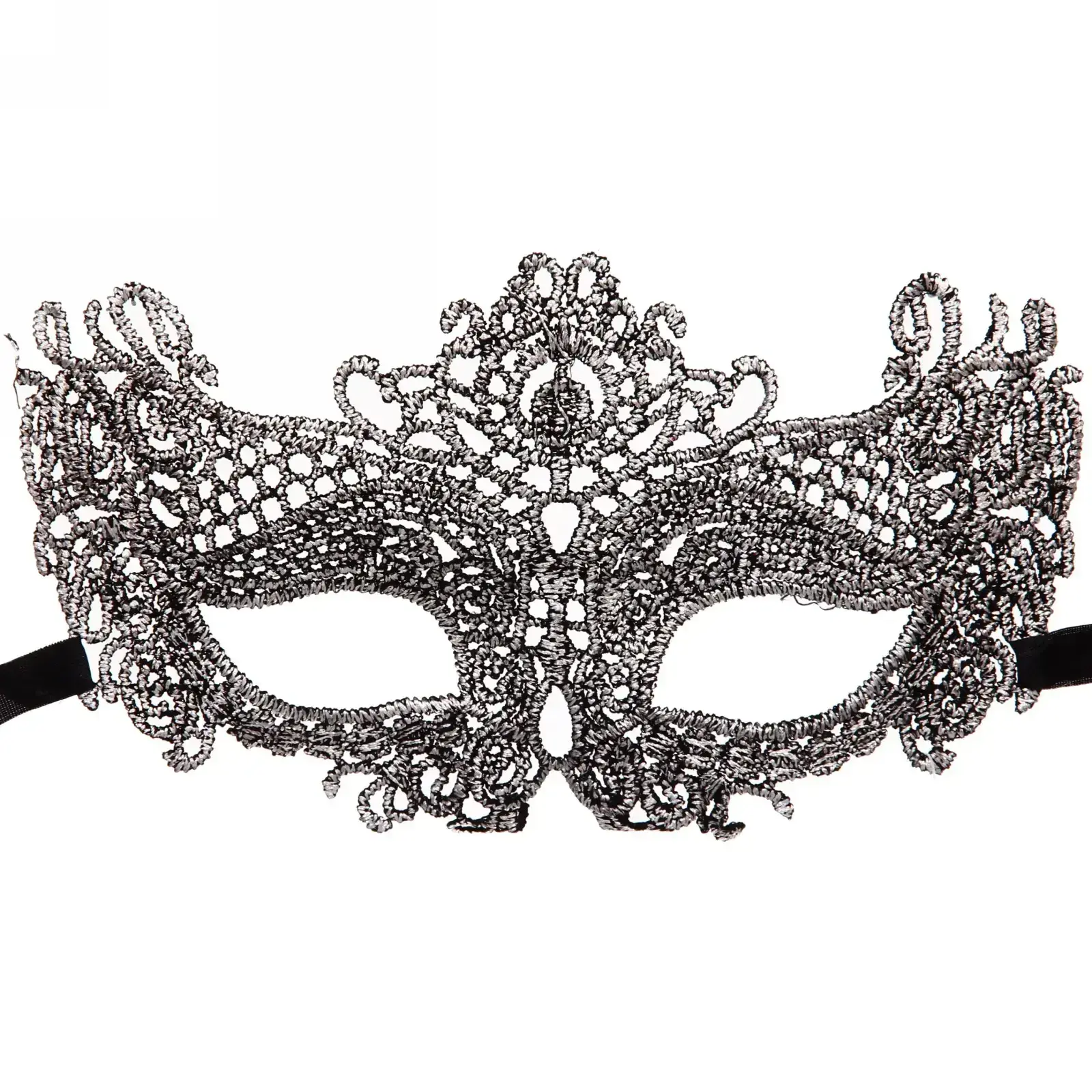 Маска представлена в черном цвете с изысканным кружевным узором, который придает ей особую привлекательность. Размеры маски не указаны, но она предназначена для стандартных размеров лиц. Не упустите возможность добавить этот стильный аксессуар в свою коллекцию!