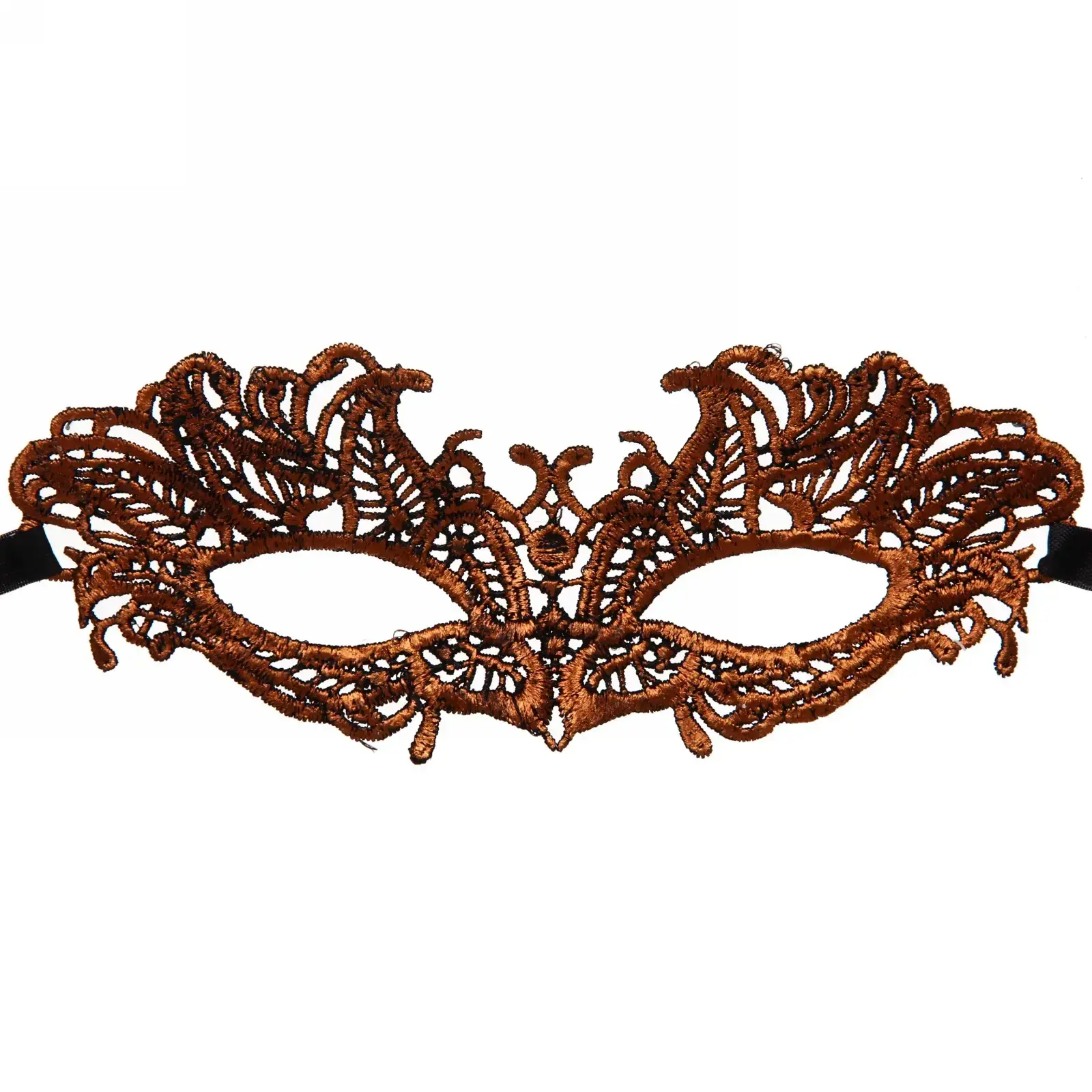 Маска выполнена в бронзовом цвете с градиентом, что придает ей особую изысканность. Декоративные элементы по краям и симметричная форма делают ее поистине уникальной. Размер маски подходит для стандартного размера головы, что делает ее универсальной для большинства пользователей.