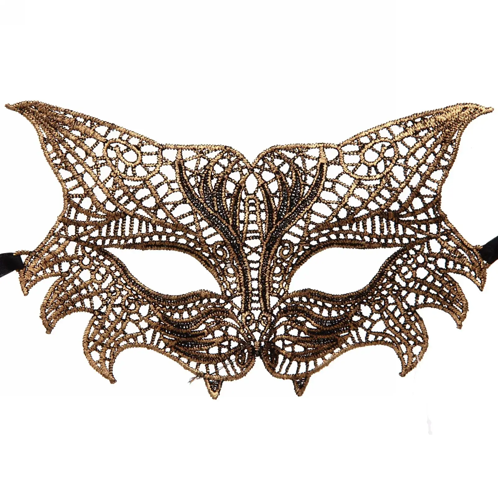 Маска карнавальная «Тигрица», ажурное кружево, металлизированная текстура, черный/золотистый, пластик/текстиль