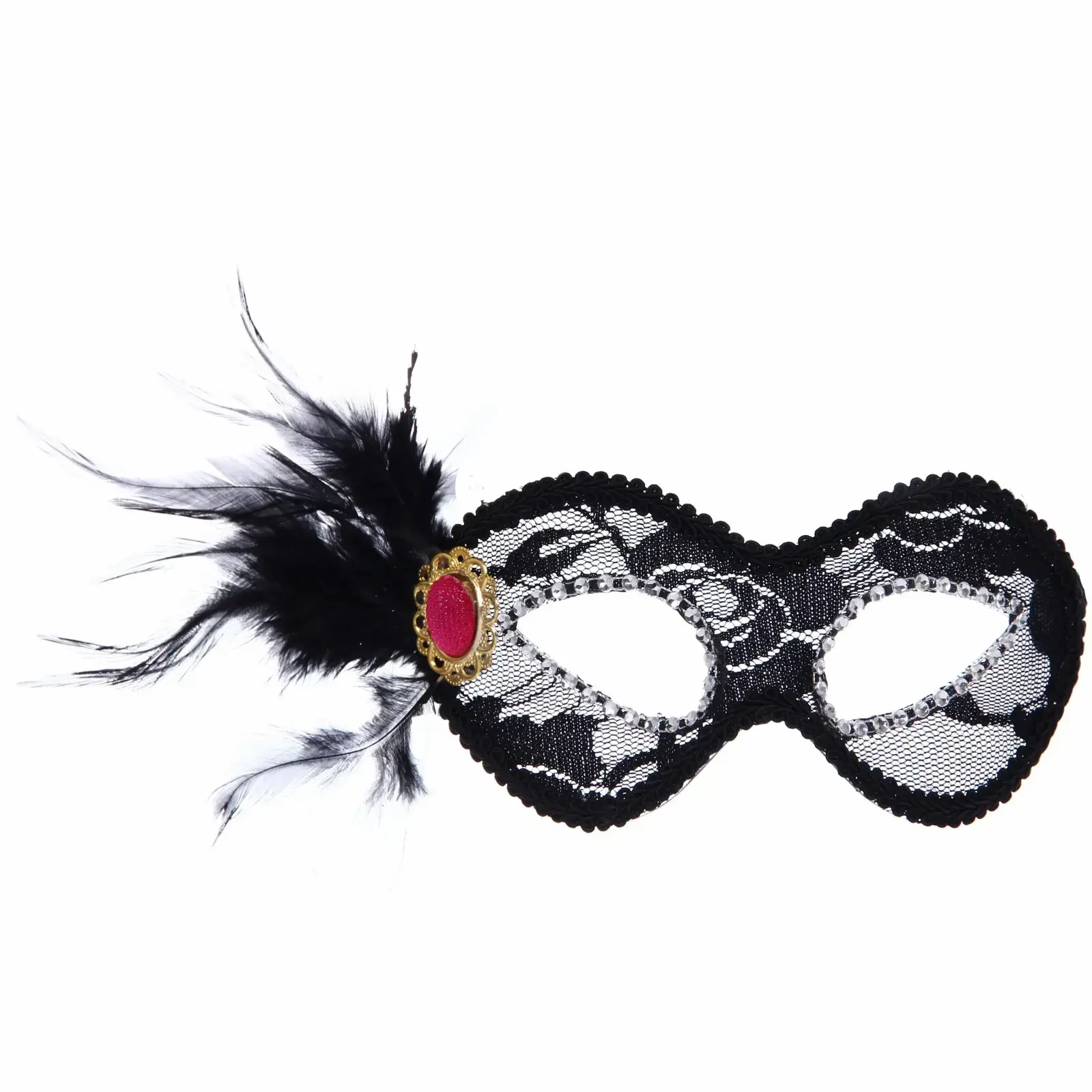 Маска выполнена в черном цвете с добавлением перьев и декоративных элементов, что придает ей изысканный вид. Она имеет две прорези для глаз, что обеспечивает хороший обзор. Размеры маски стандартные, что делает ее подходящей для большинства взрослых. Не упустите возможность добавить этот уникальный аксессуар в свой гардероб и сделать ваш праздник незабываемым!