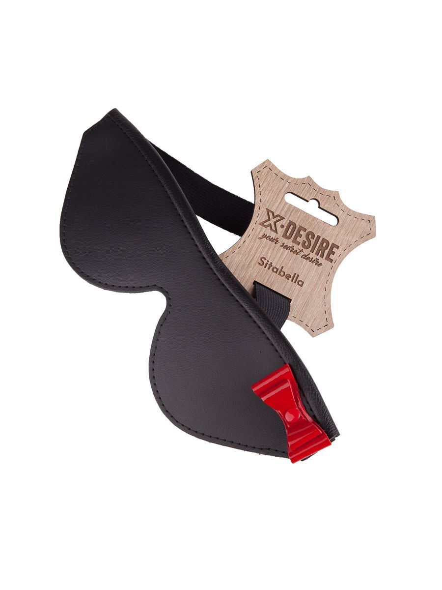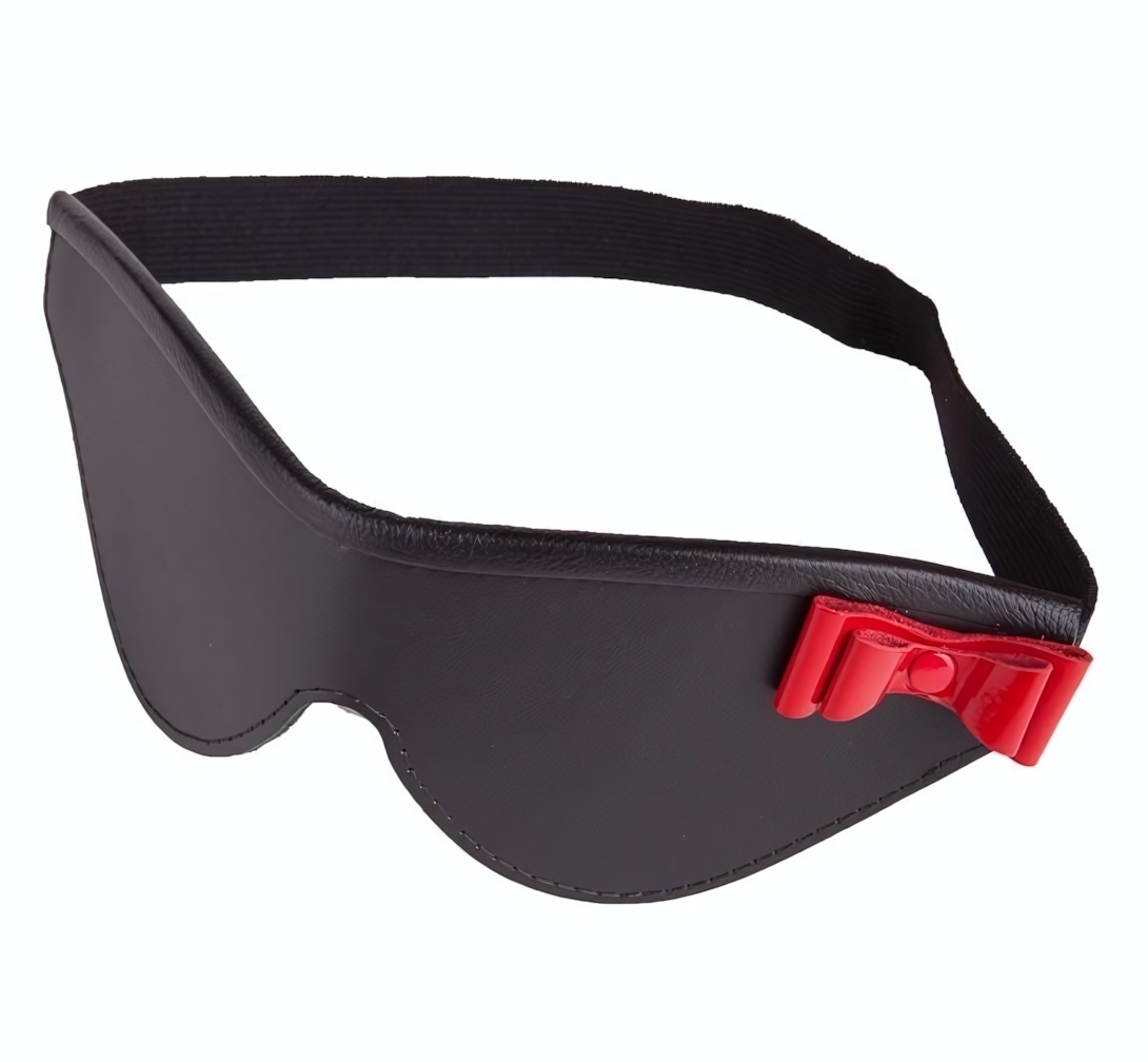 Маска на глаза 'BDSM accessories', натуральная кожа, черная с красным бантом, регулируемая резинка