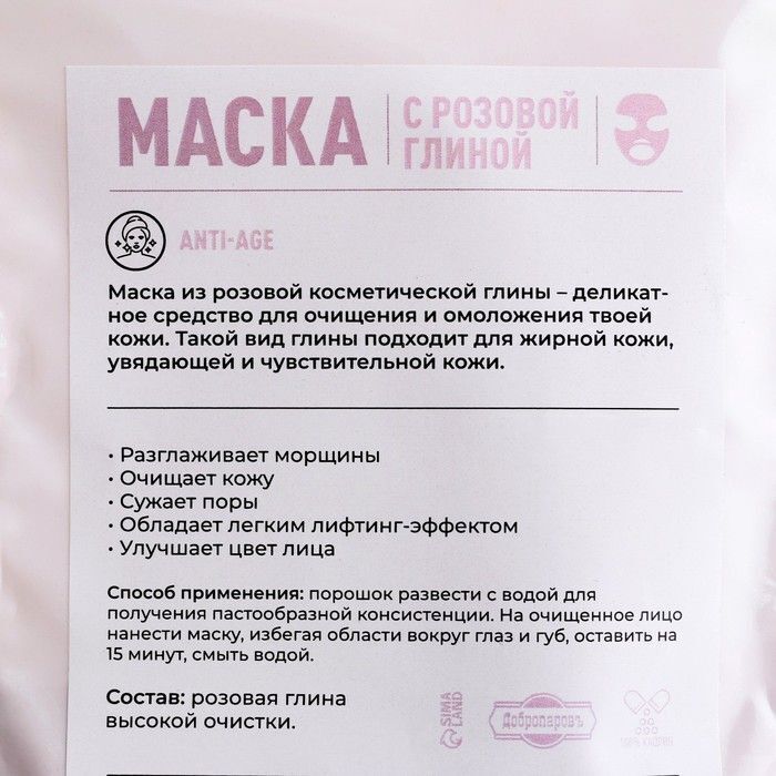 Объем упаковки составляет 50 гр, что делает маску удобной для использования в домашних условиях. Розовая глина высокой очистки, входящая в состав, обеспечивает деликатное воздействие на кожу, не вызывая раздражений. Позвольте себе насладиться качественным уходом и почувствовать разницу!