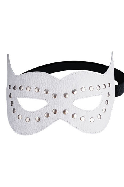 Белая кожаная маска с эффектными металлическими заклепками создает неповторимый стиль и подчеркивает индивидуальность. Идеальное сочетание элегантности и дерзости для особых случаев.