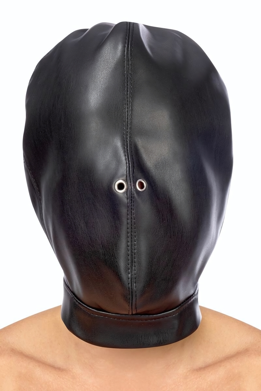 Маска-шлем из искусственной кожи, черный, с отверстиями для дыхания и регулируемой шнуровкой